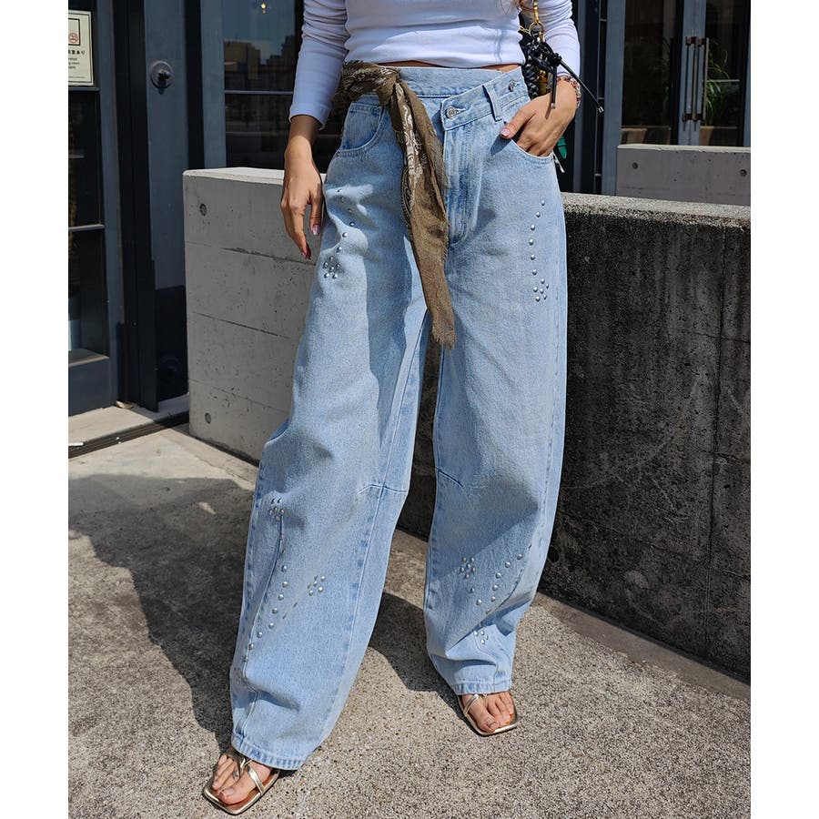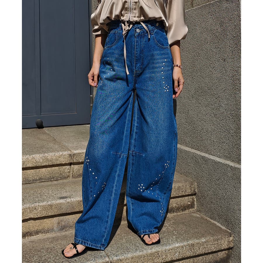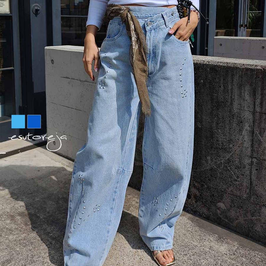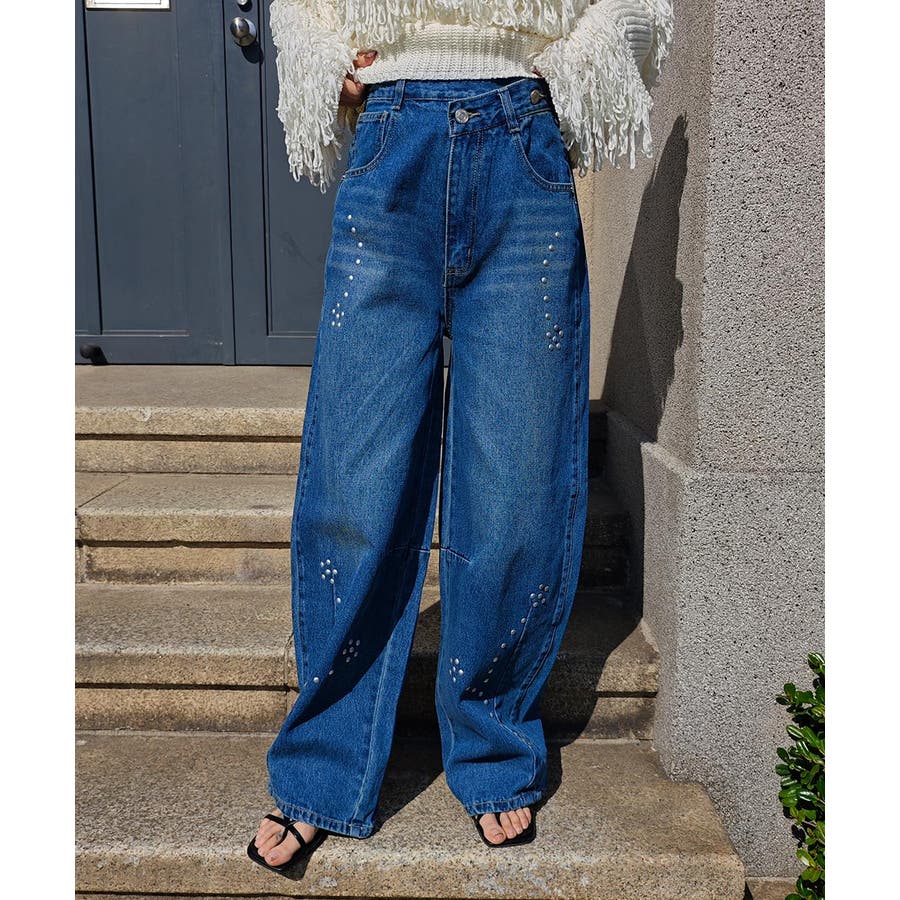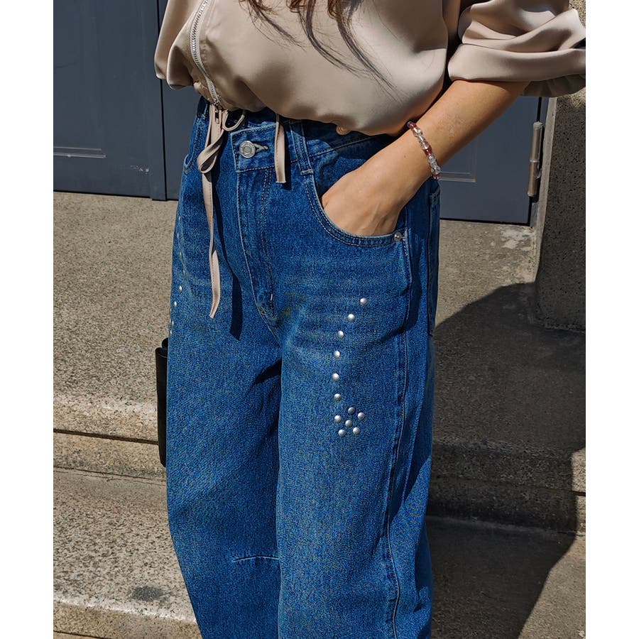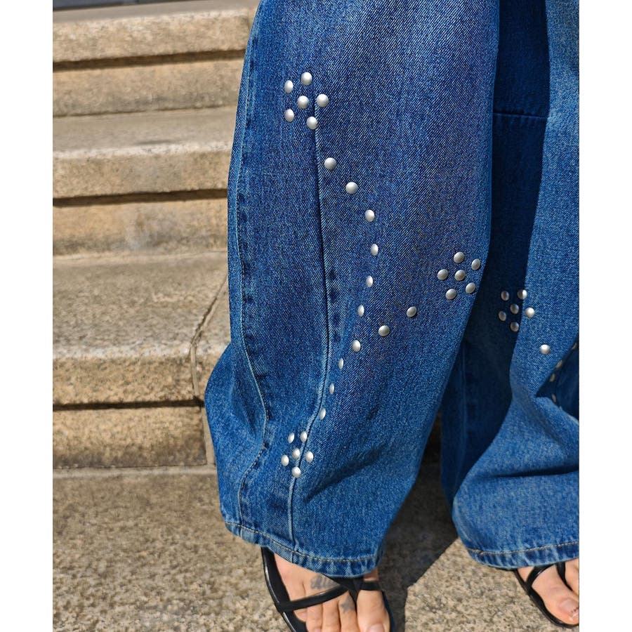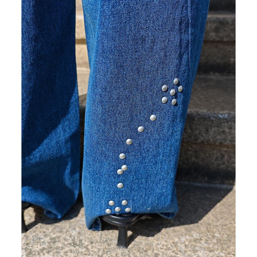 スタッズカーブデニムパンツesutoreja ボトム スタイルアップ