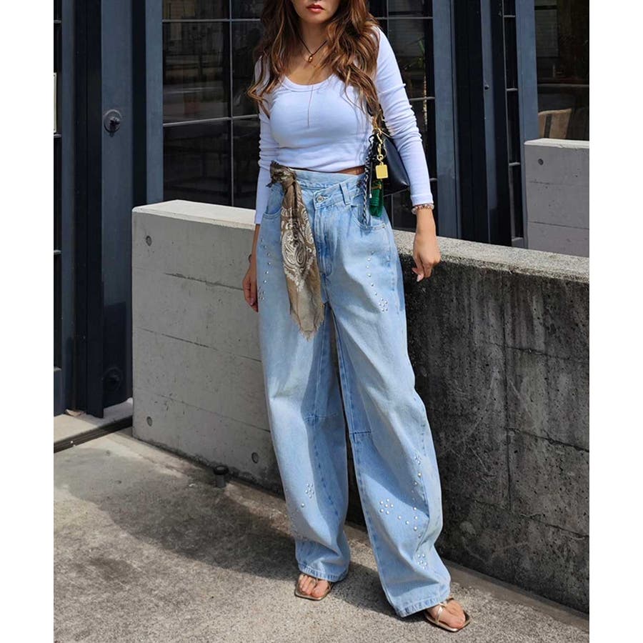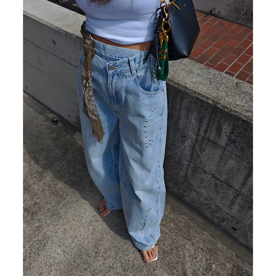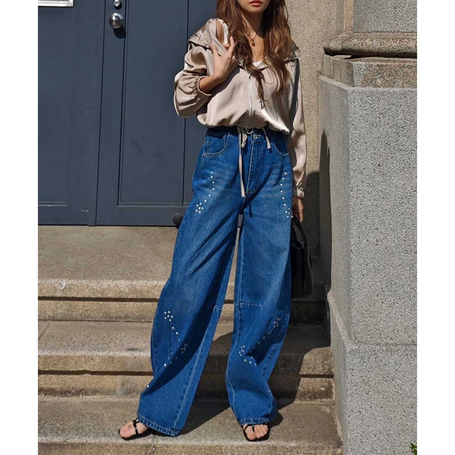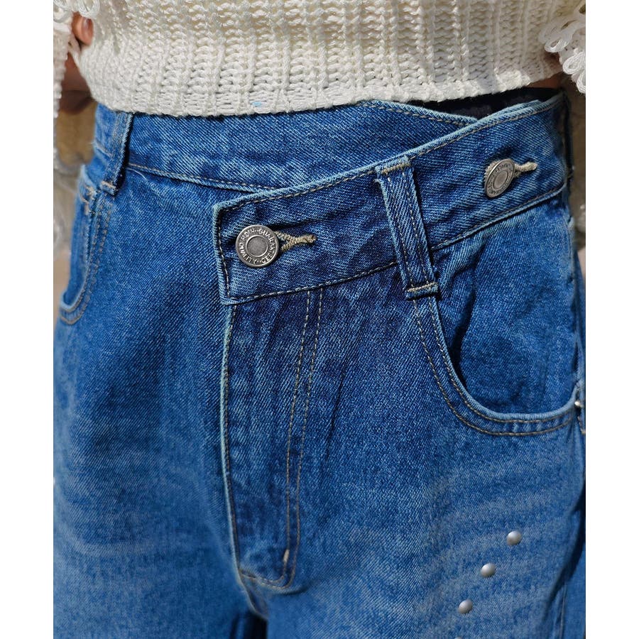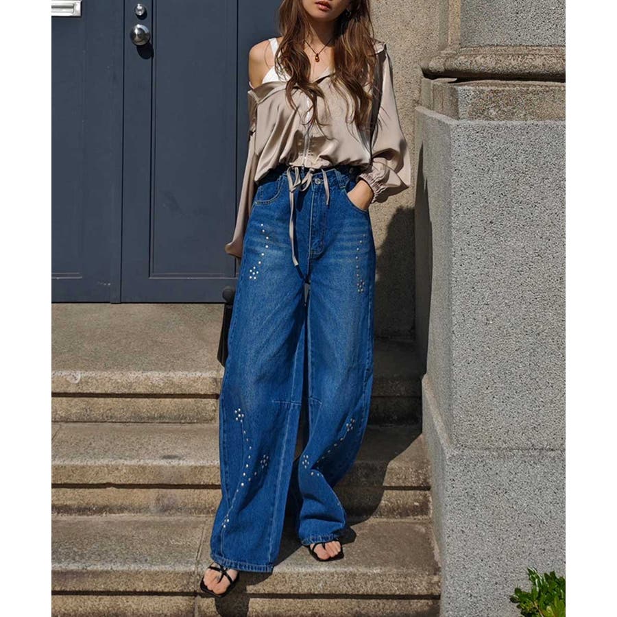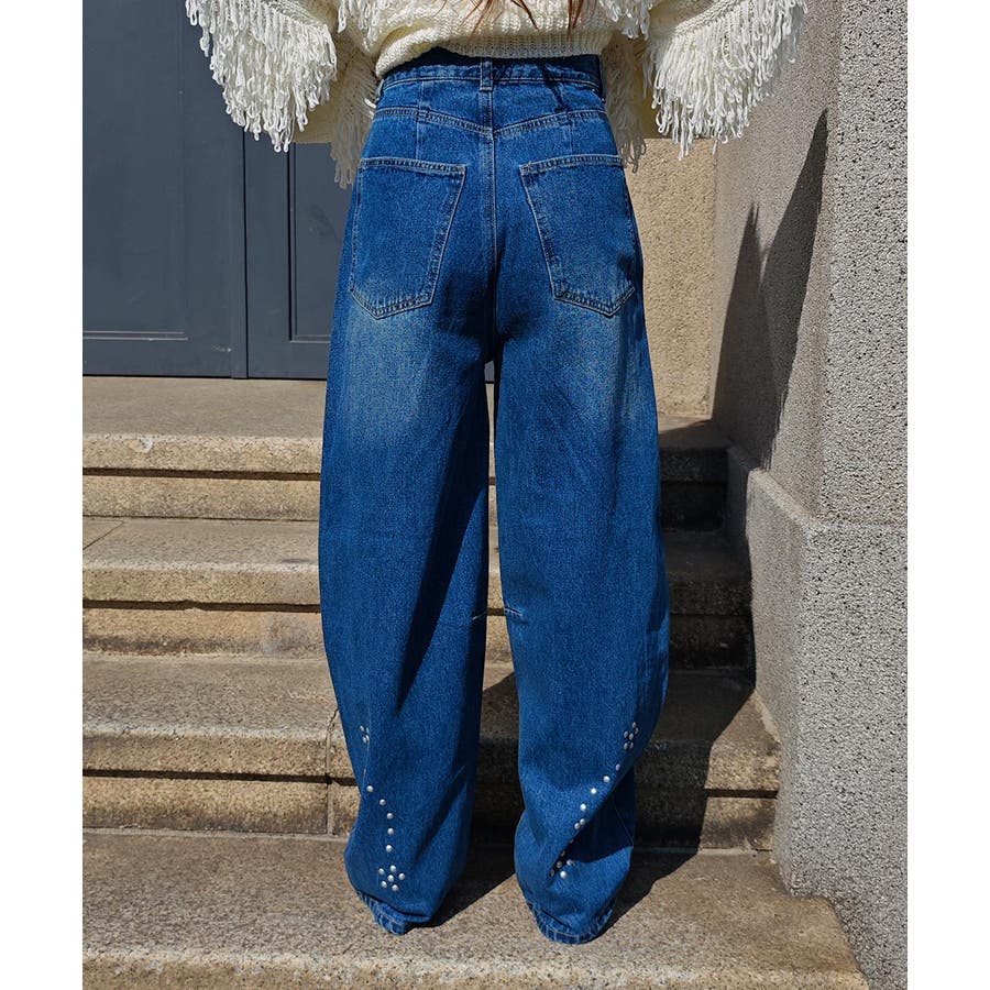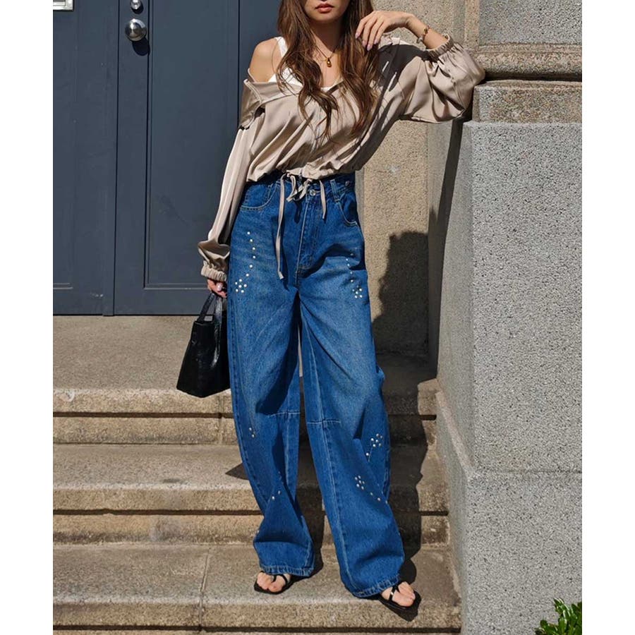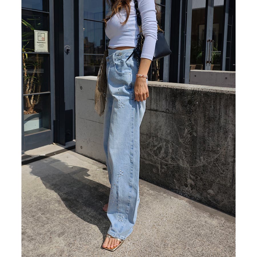 スタッズカーブデニムパンツesutoreja ボトム スタイルアップ