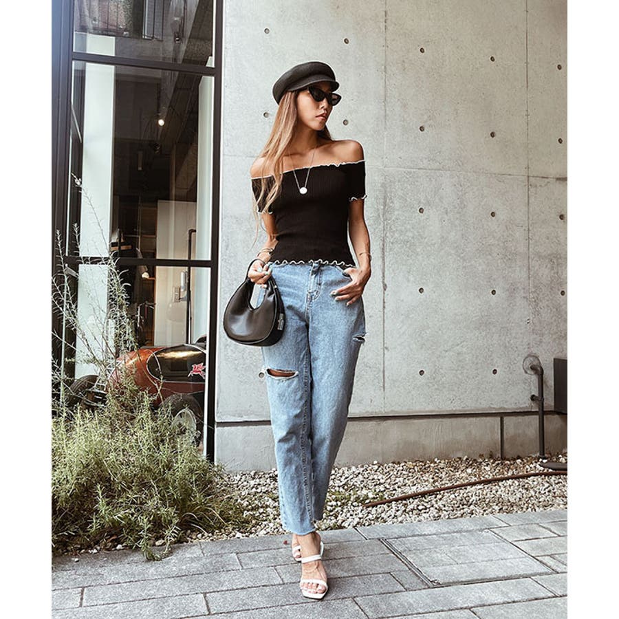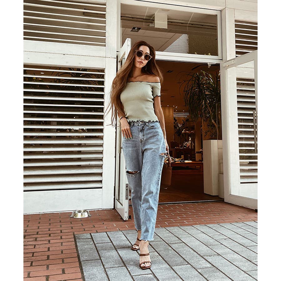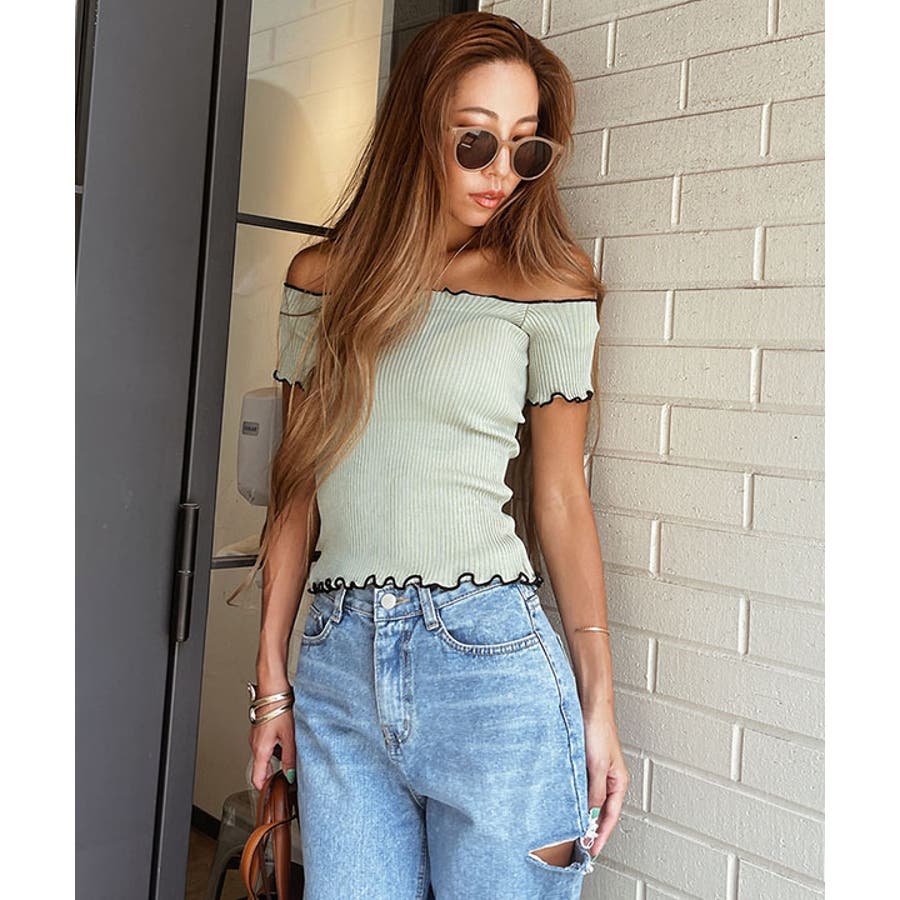 オフショアーリブニットトップス