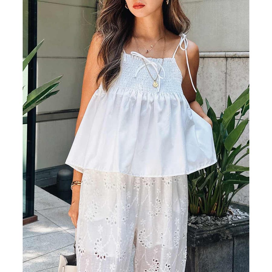 リボンギャザーキャミソールesutoreja カットソー レディース トレンド