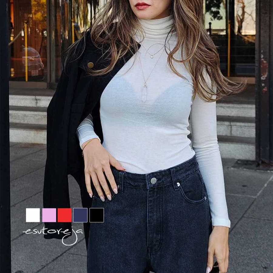 ベーシックタートルネックトップスesutoreja カットソー スタイルアップ