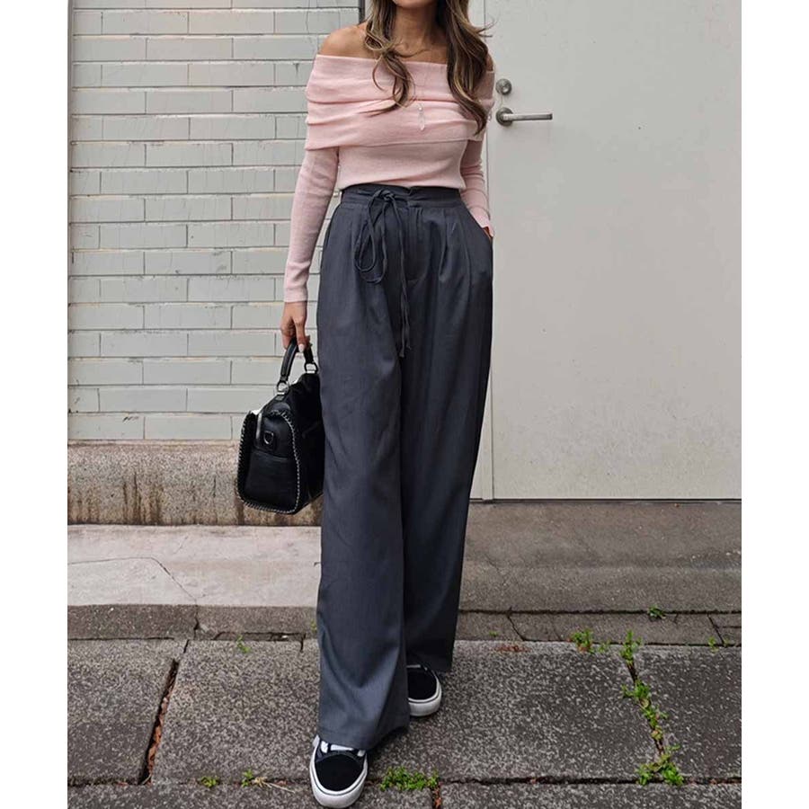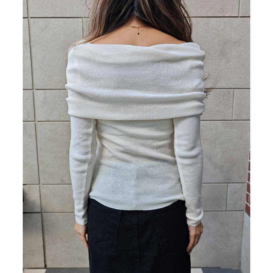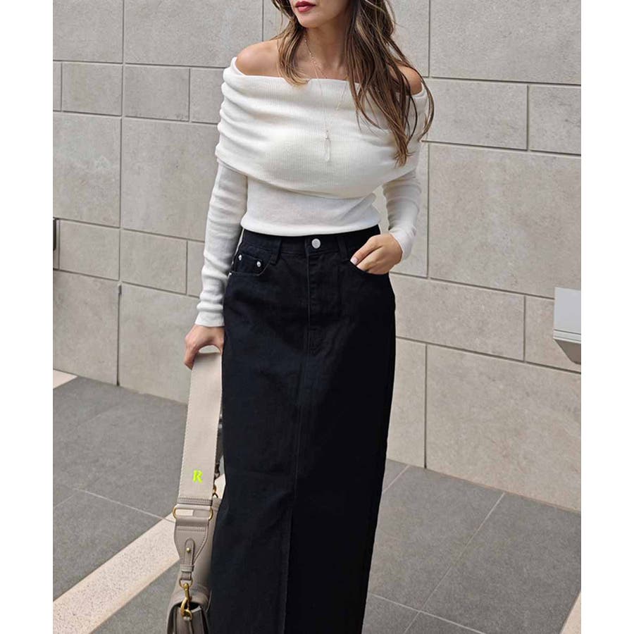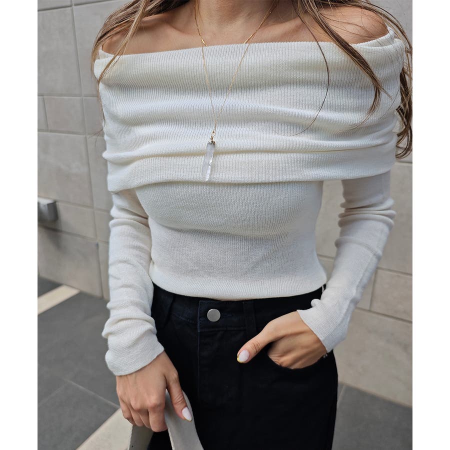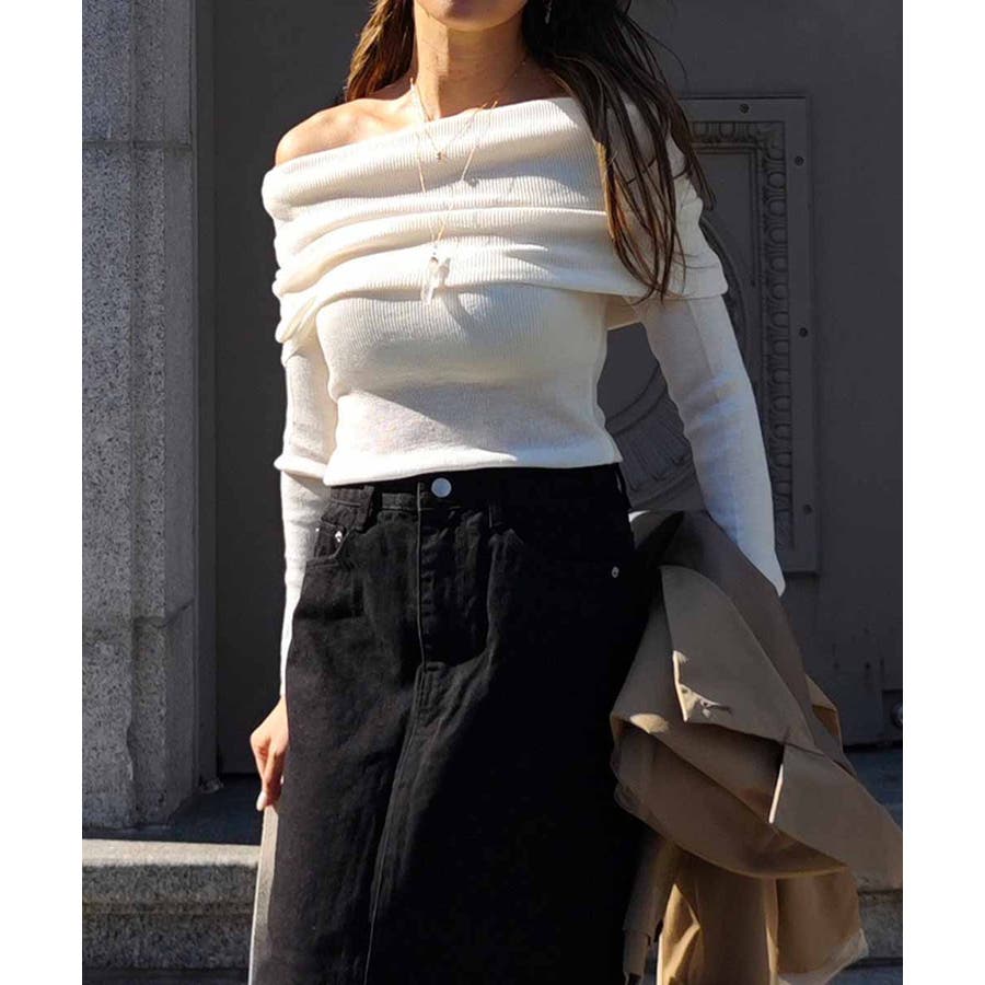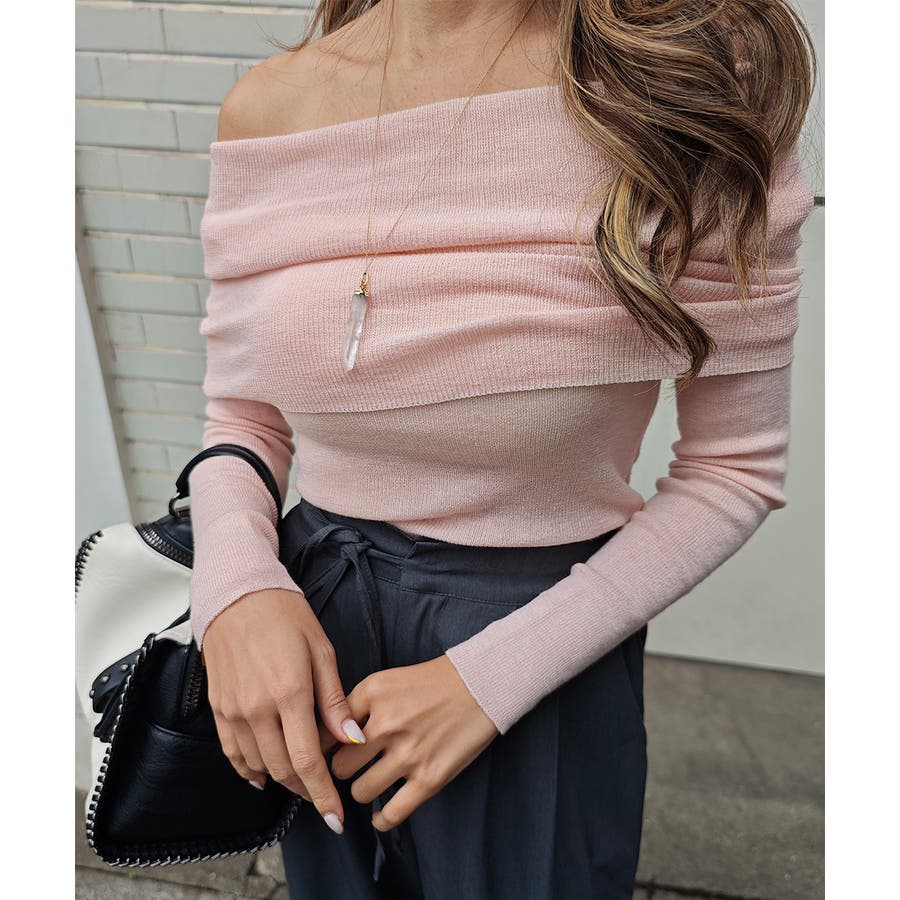 オフショルダーニットトップスesutoreja カットソー スタイルアップ