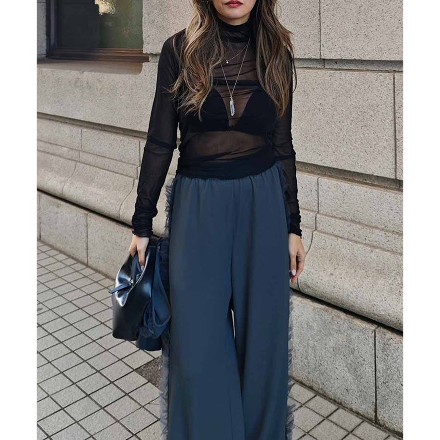 シアータートルネックトップスesutoreja カットソー スタイルアップ