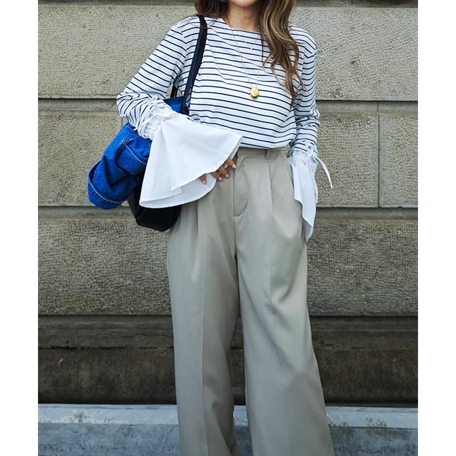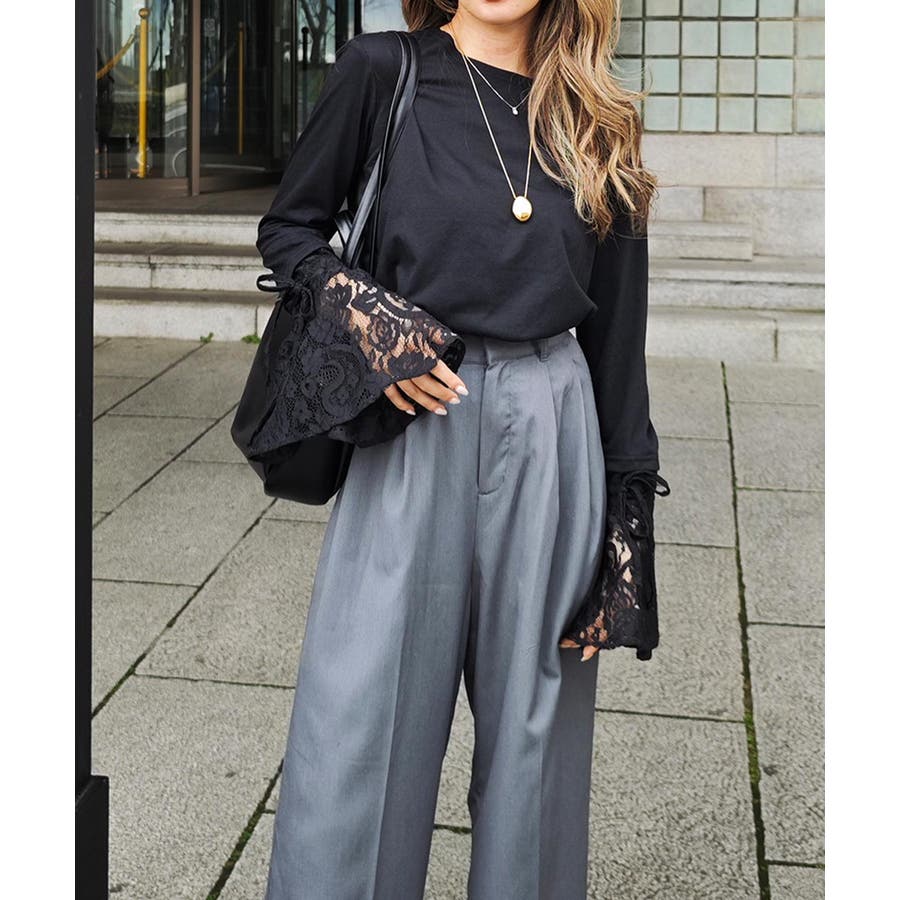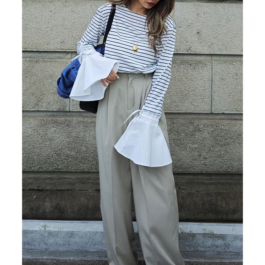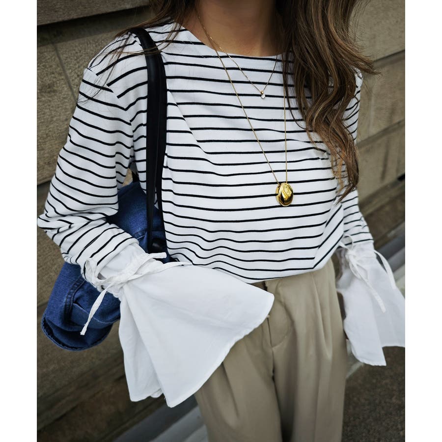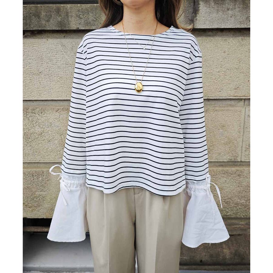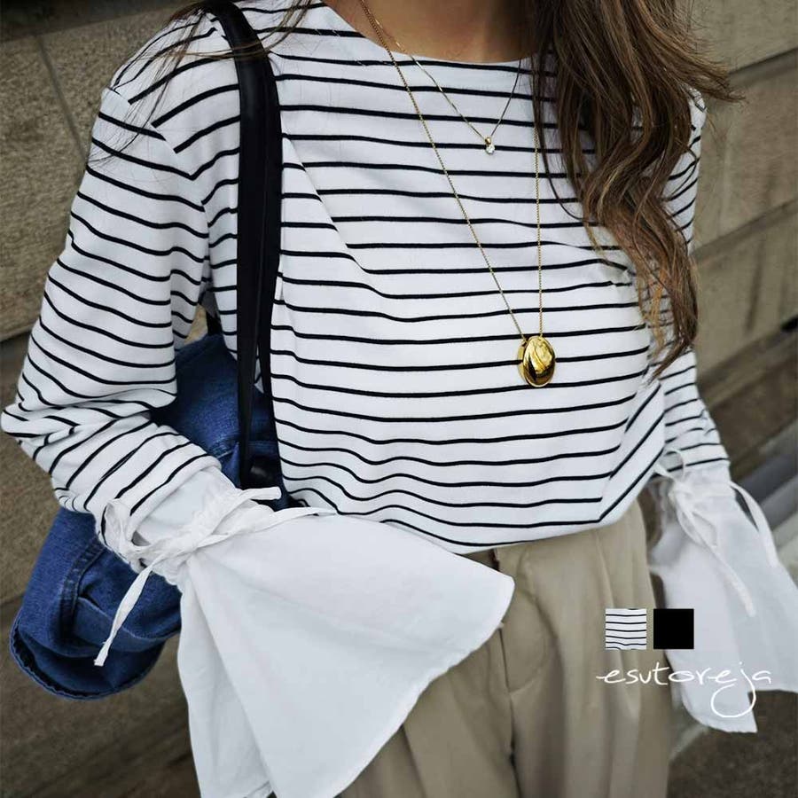 フレアスリーブトップスesutoreja カットソー スタイルアップ