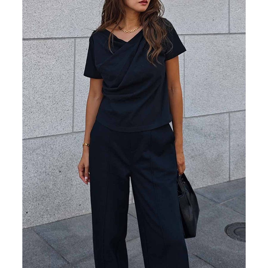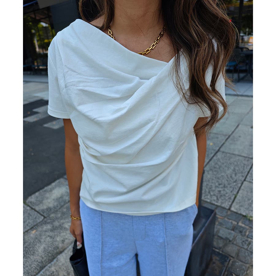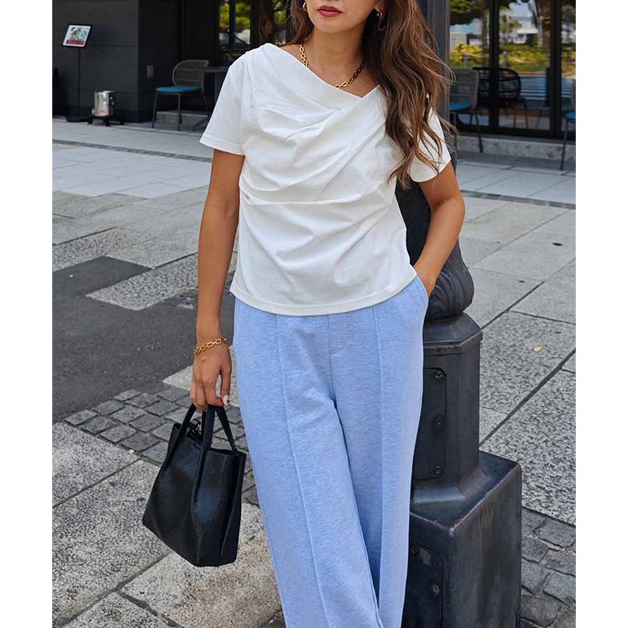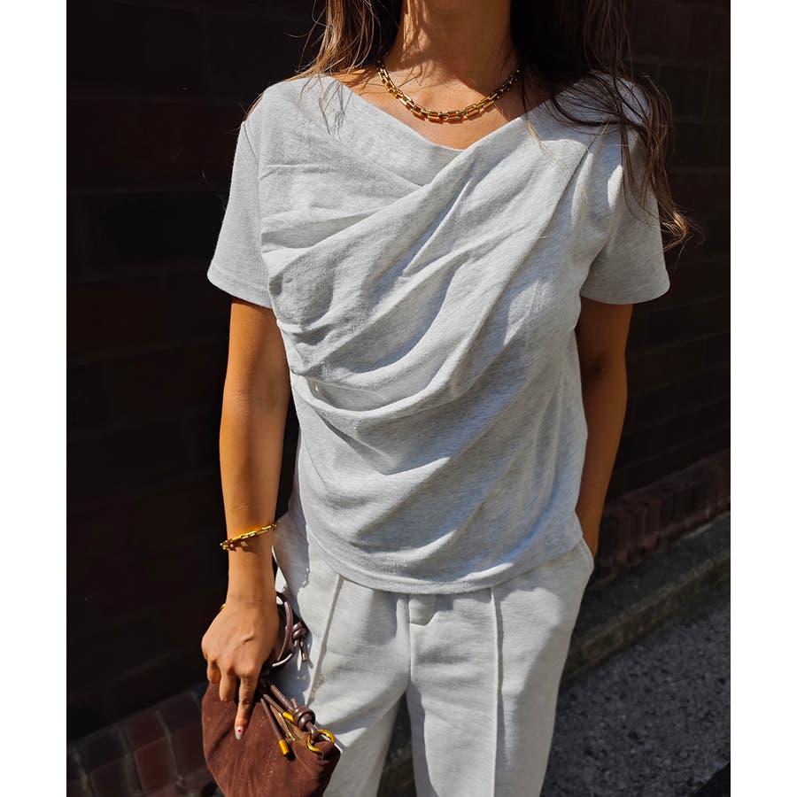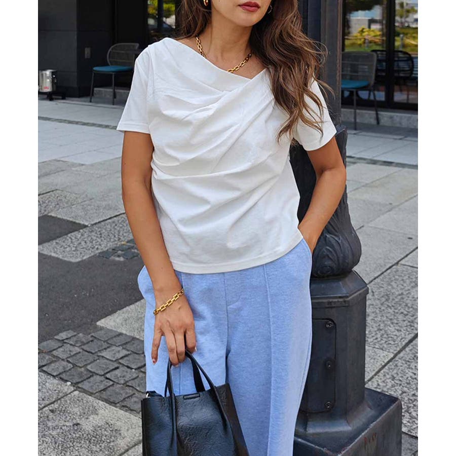 ドレープショートスリーブトップスesutoreja カットソー スタイルアップ
