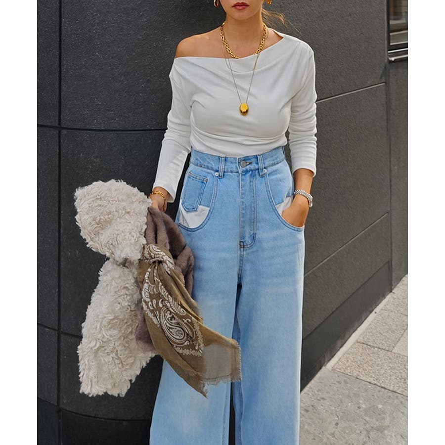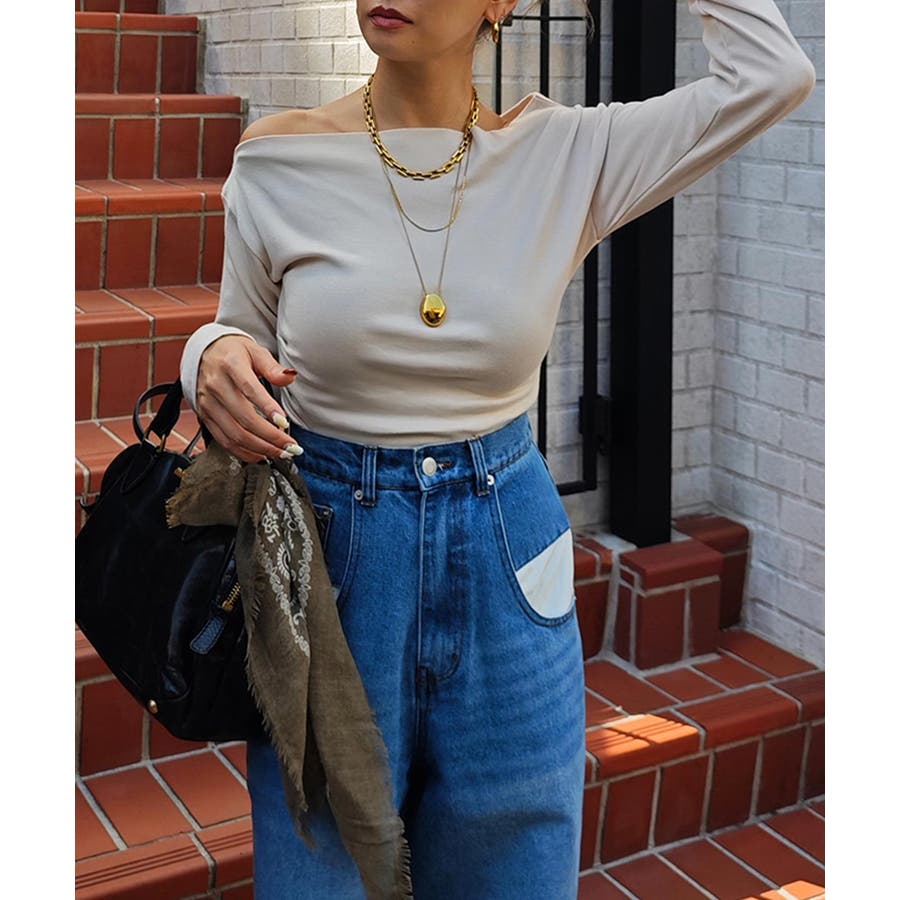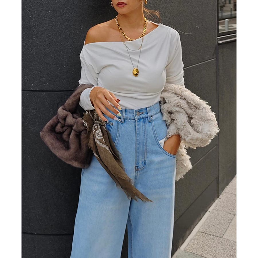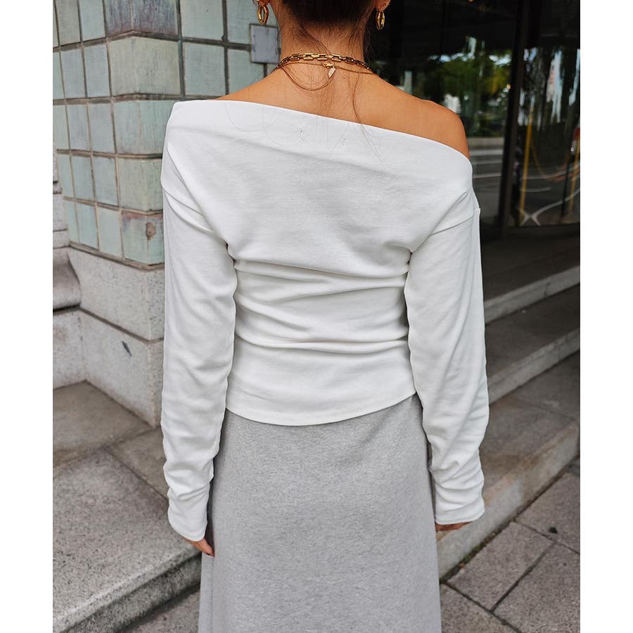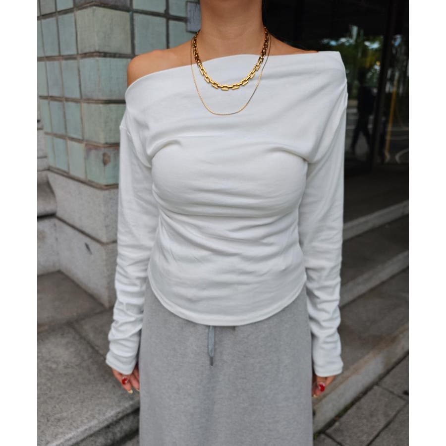ワンショルダーロングスリーブトップスesutoreja カットソー スタイルアップ