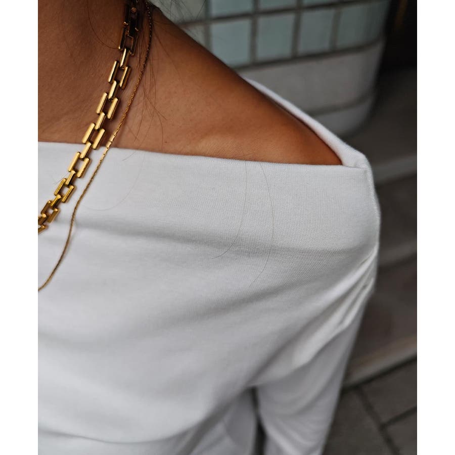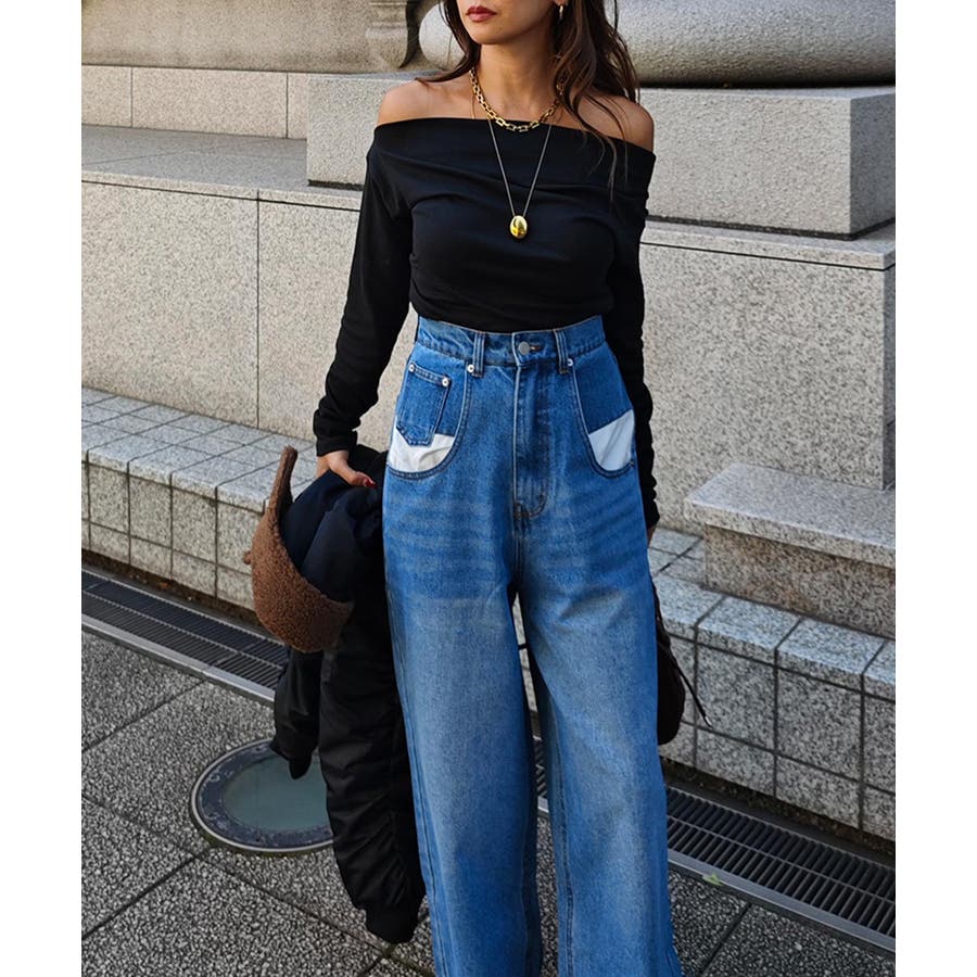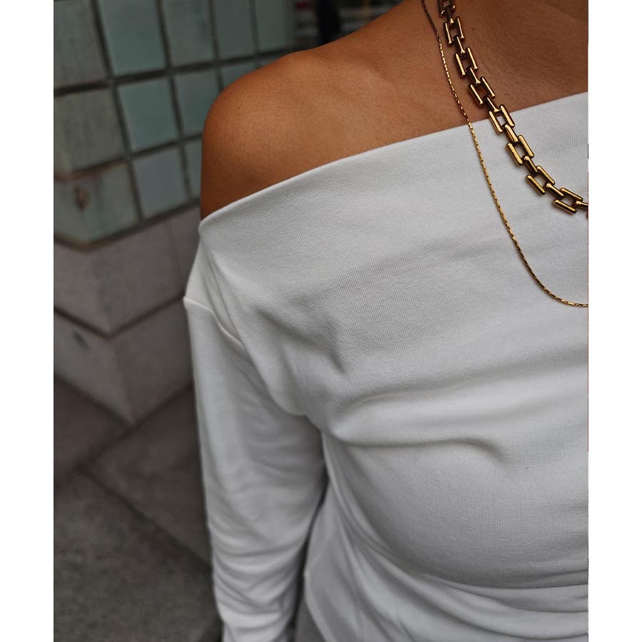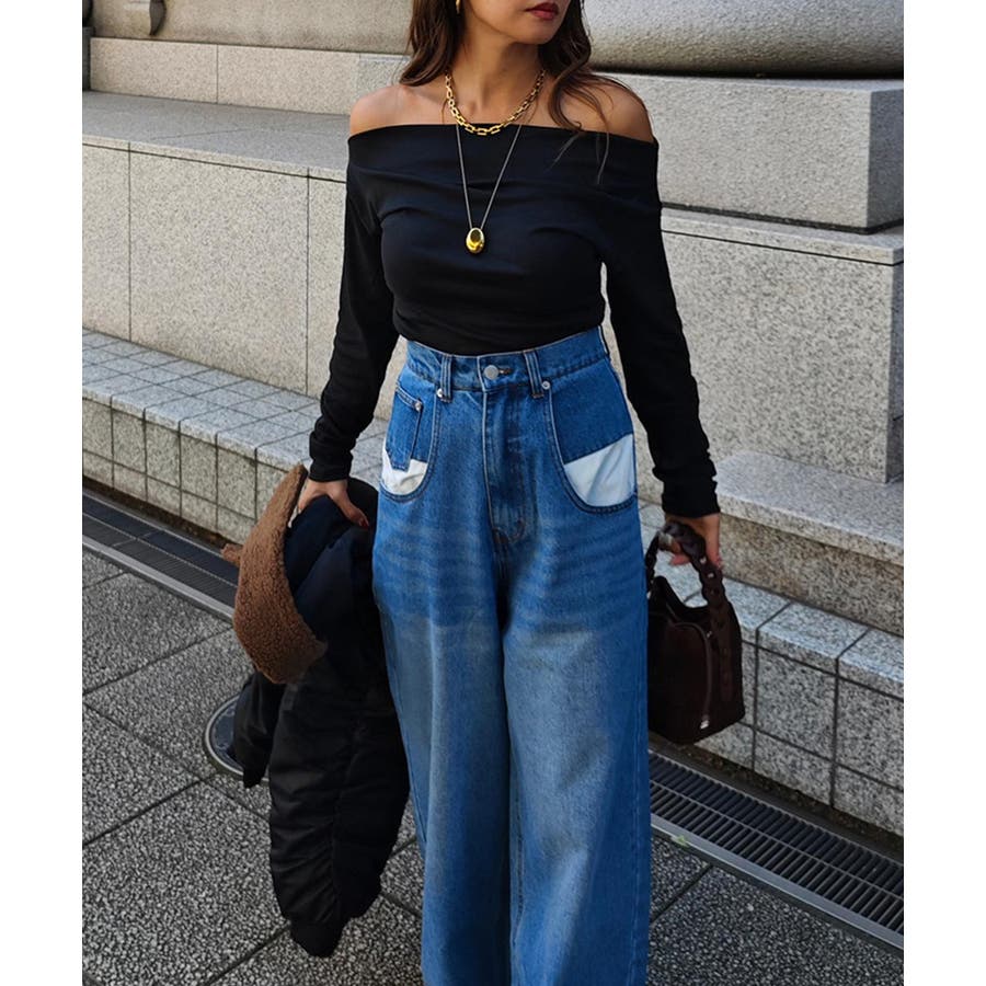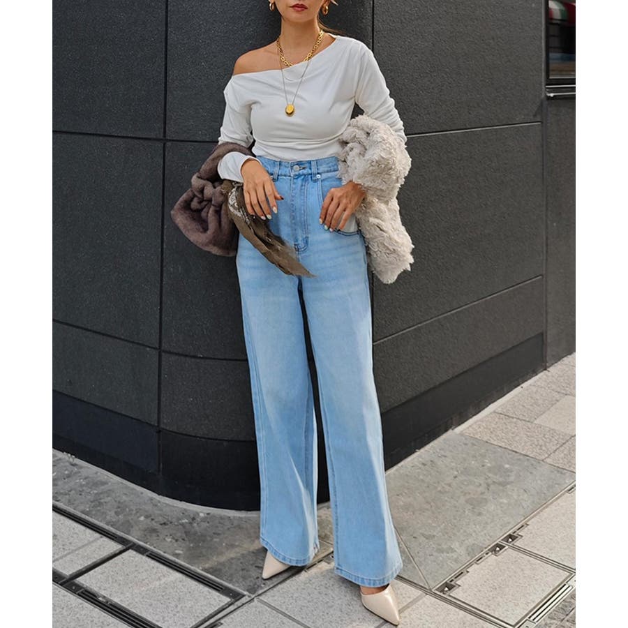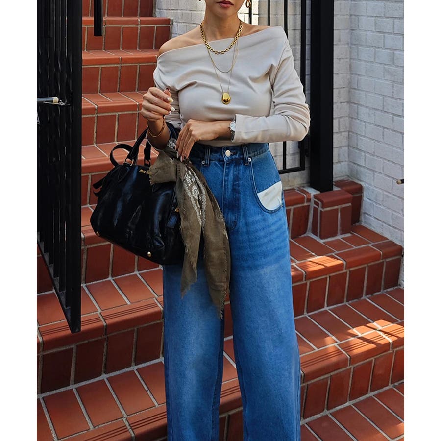 ワンショルダーロングスリーブトップスesutoreja カットソー スタイルアップ