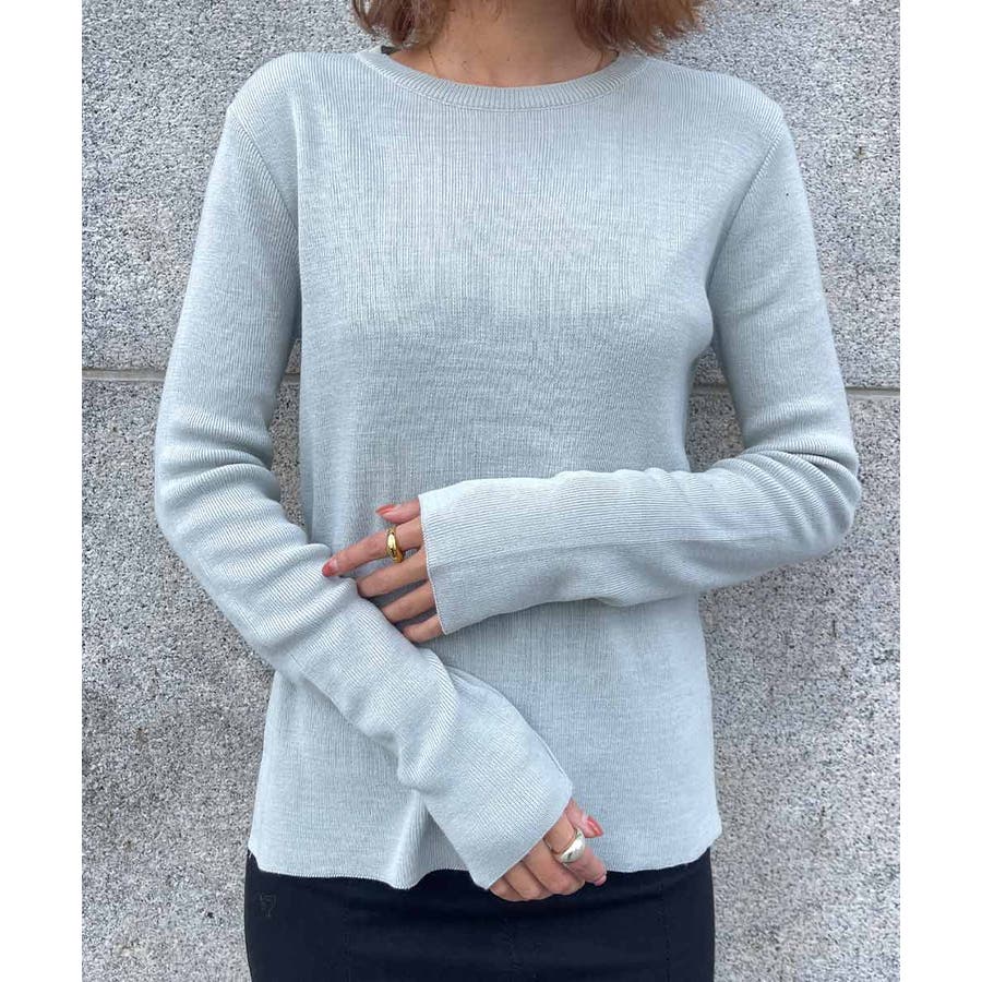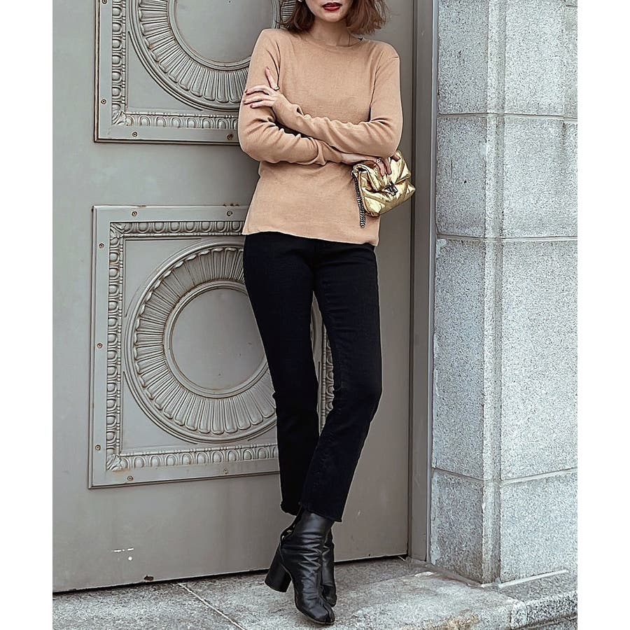 レイヤードしやすい薄さでアウターにも響かず、ロングシーズン使えるアイテムです♪