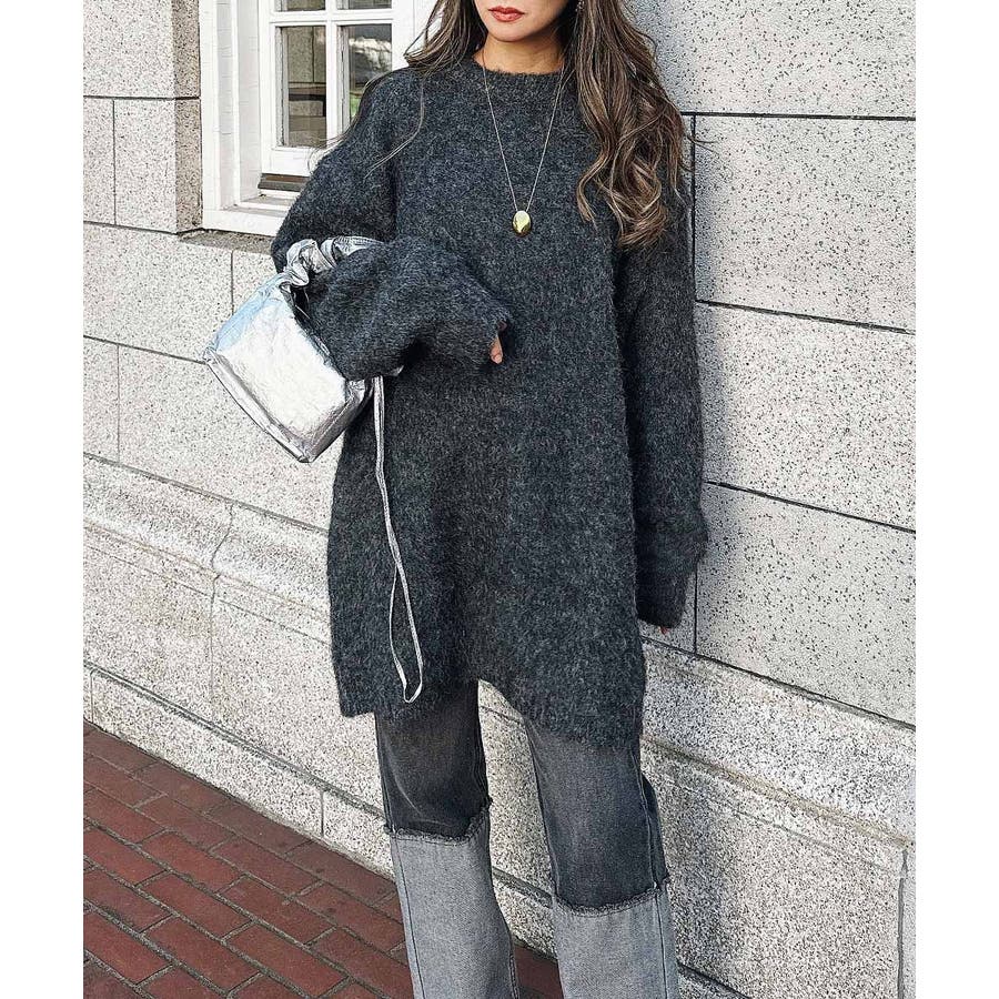 クルーネックオーバーニット