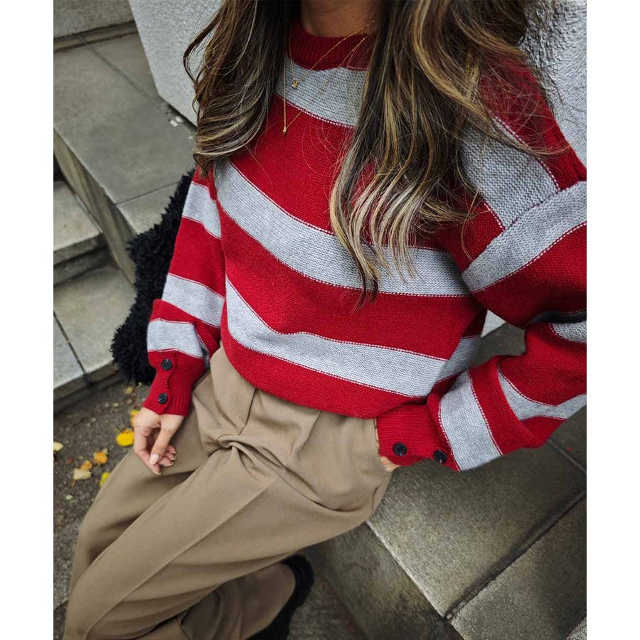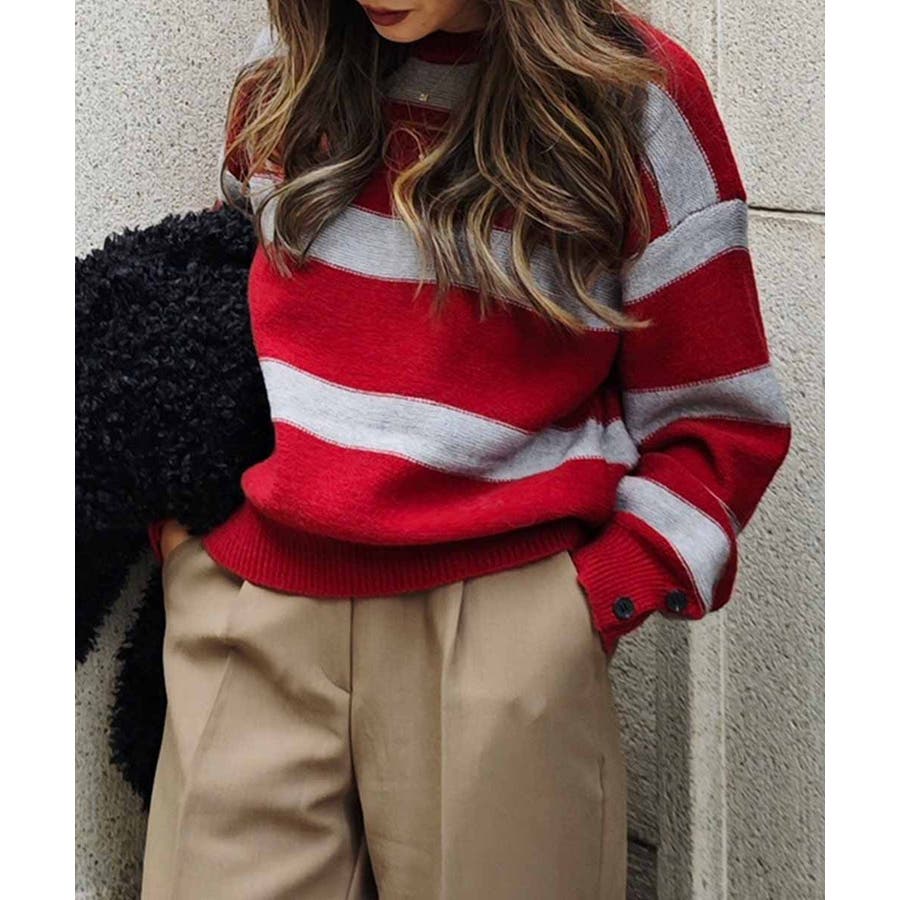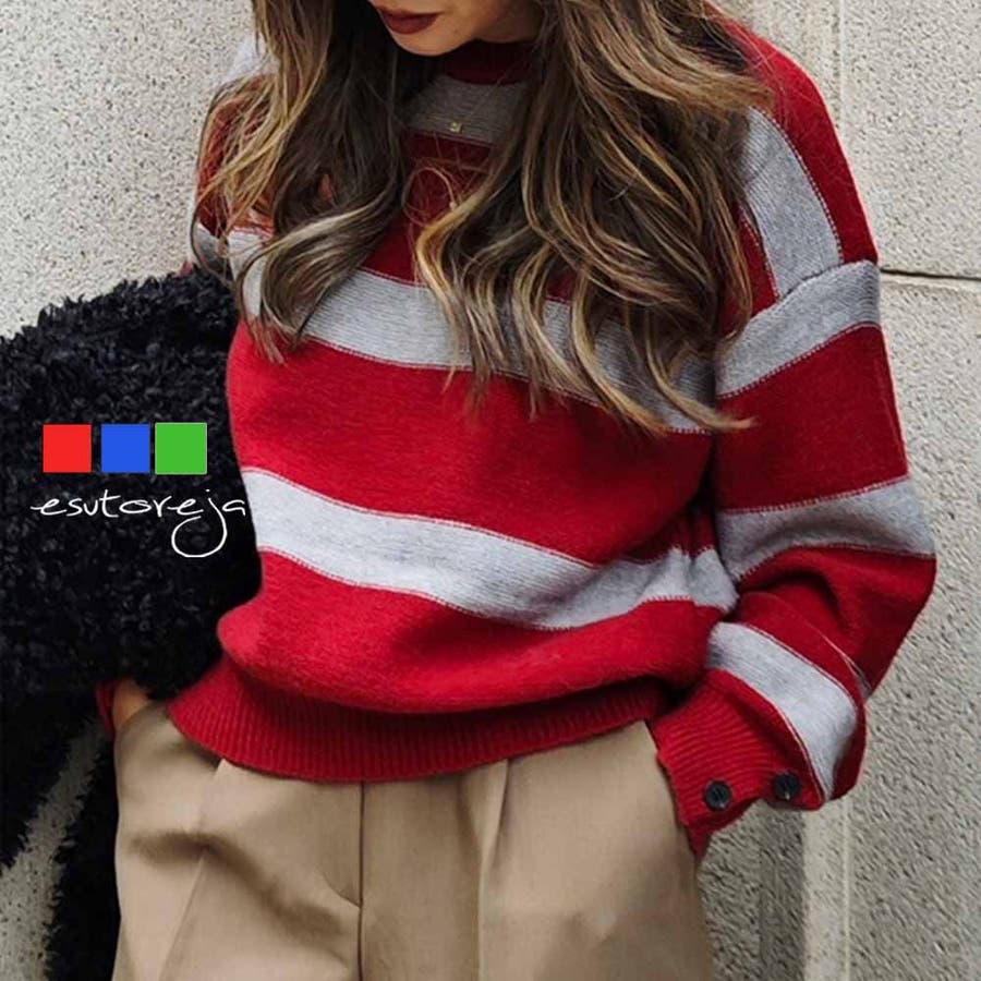 ラガーボーダーニットesutoreja ニット スタイルアップ