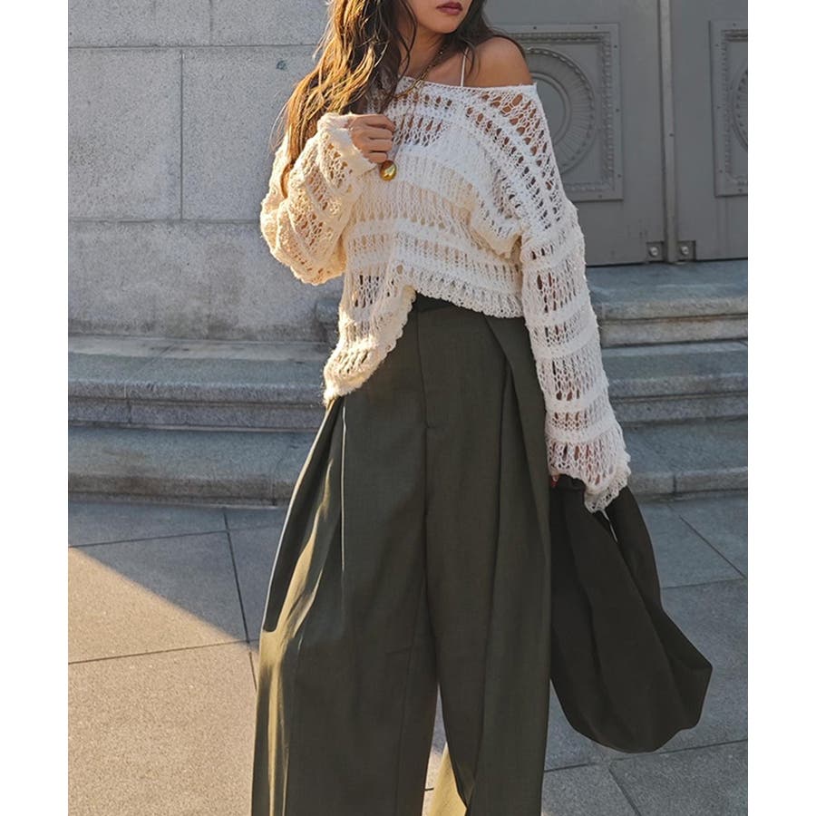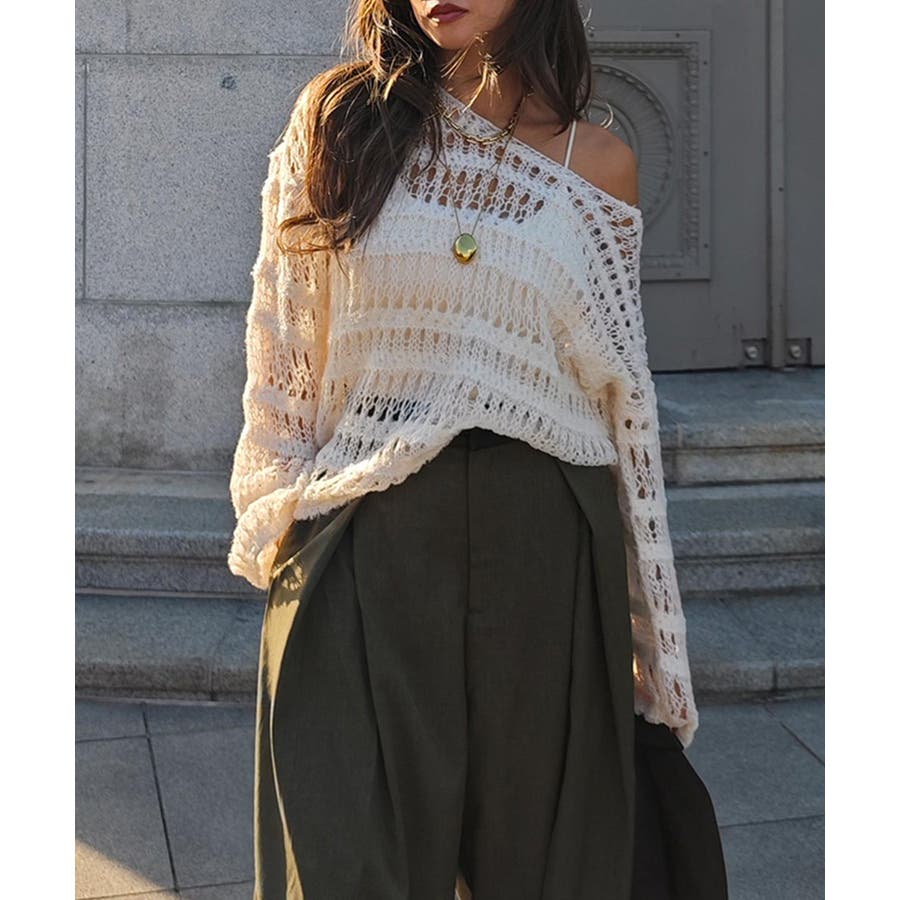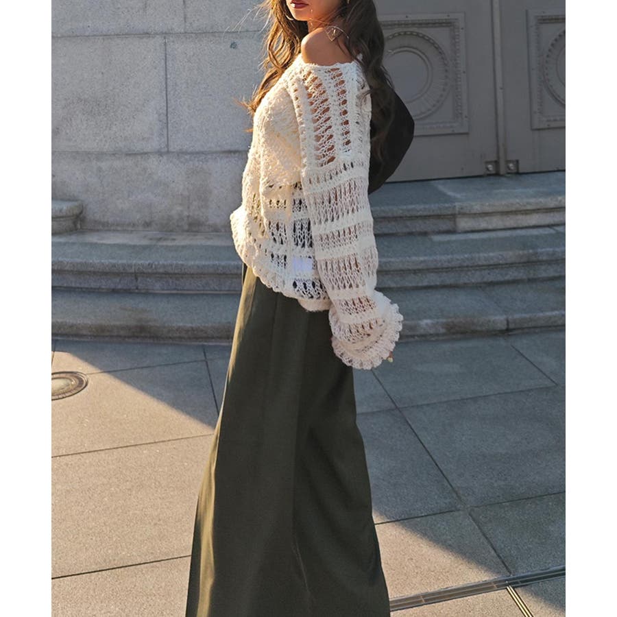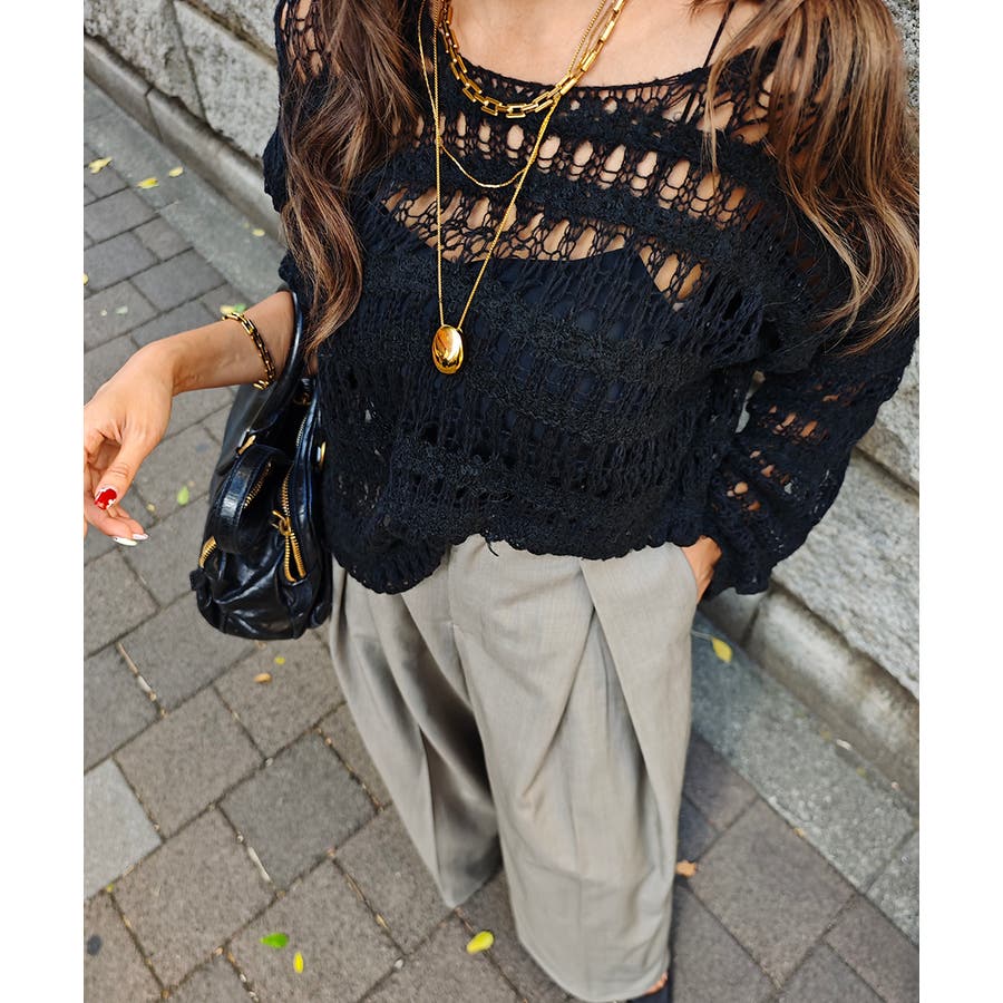 クロシェニットトップスesutoreja ニット スタイルアップ