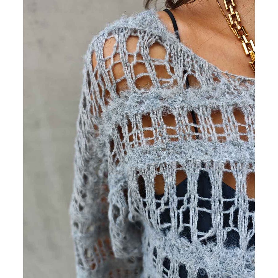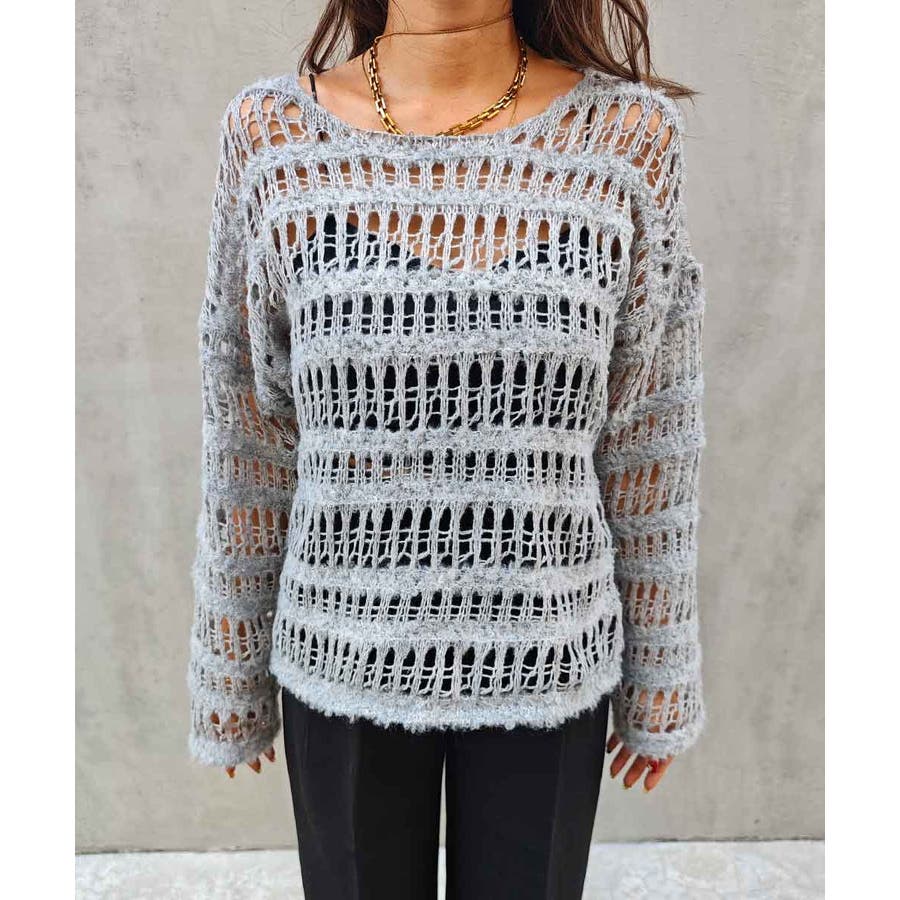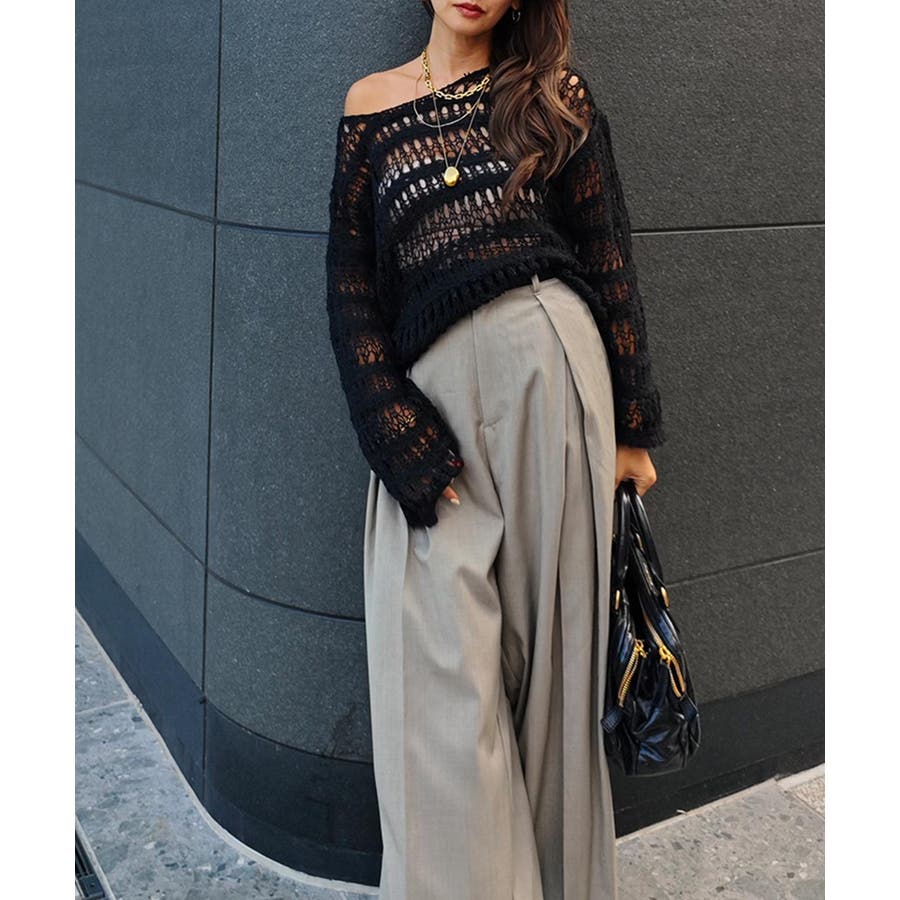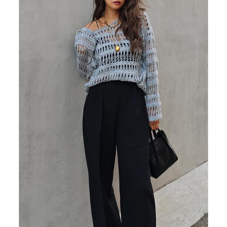 クロシェニットトップスesutoreja ニット スタイルアップ