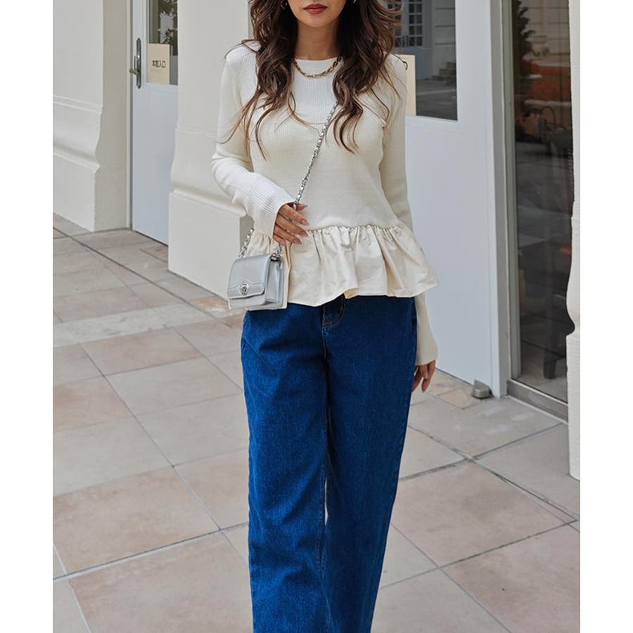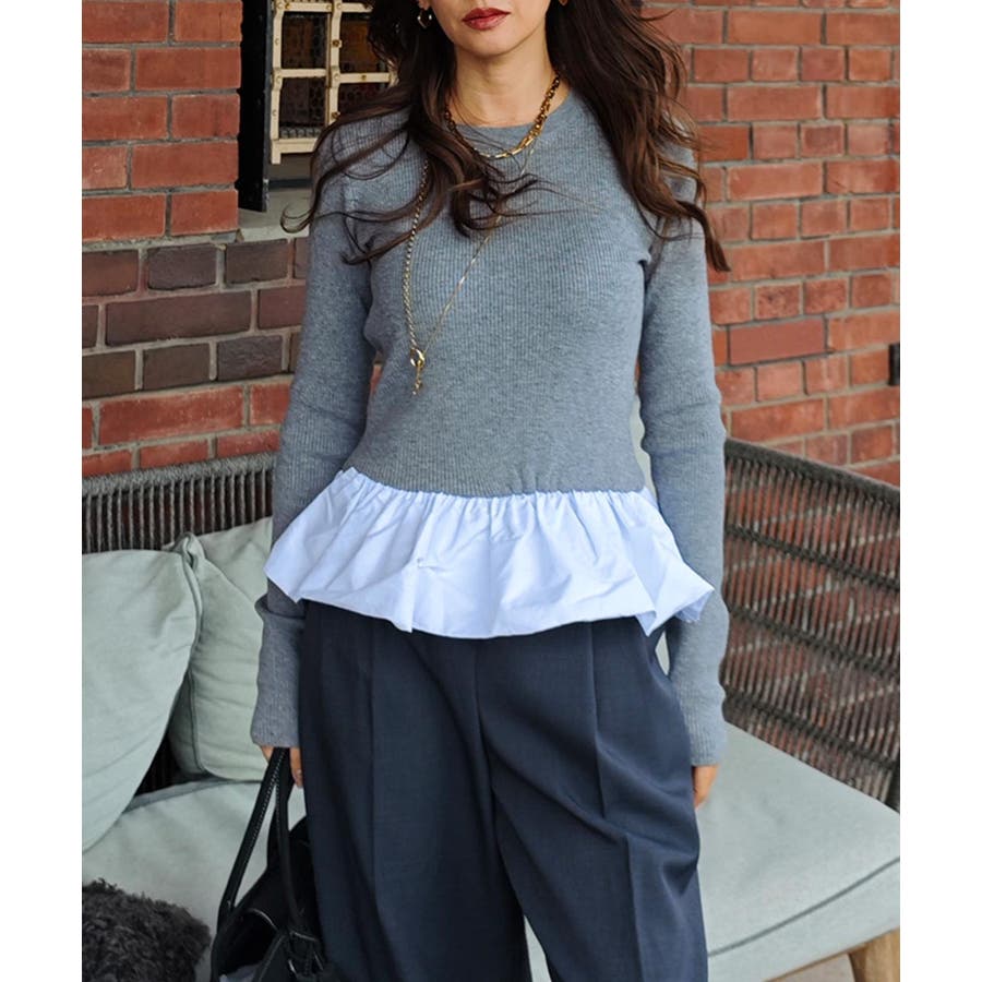 ペプラムレイヤードニットesutoreja ニット スタイルアップ