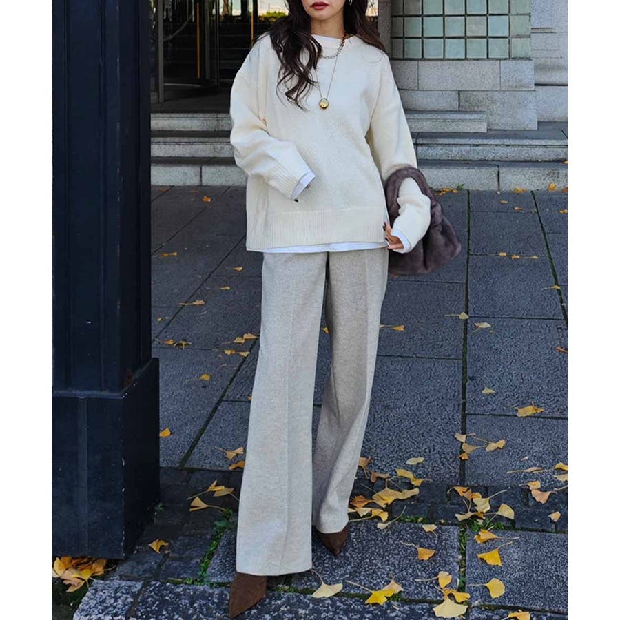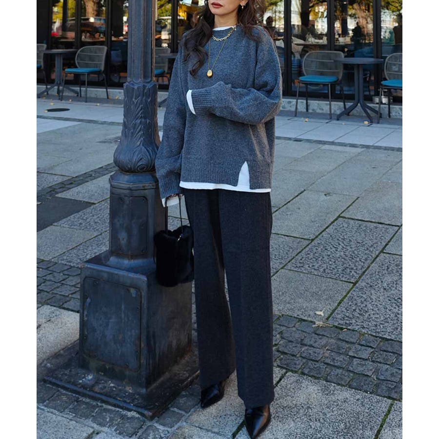 オーバーシルエットなので細めからワイドなパンツまで相性ばっちり。スカート合わせも