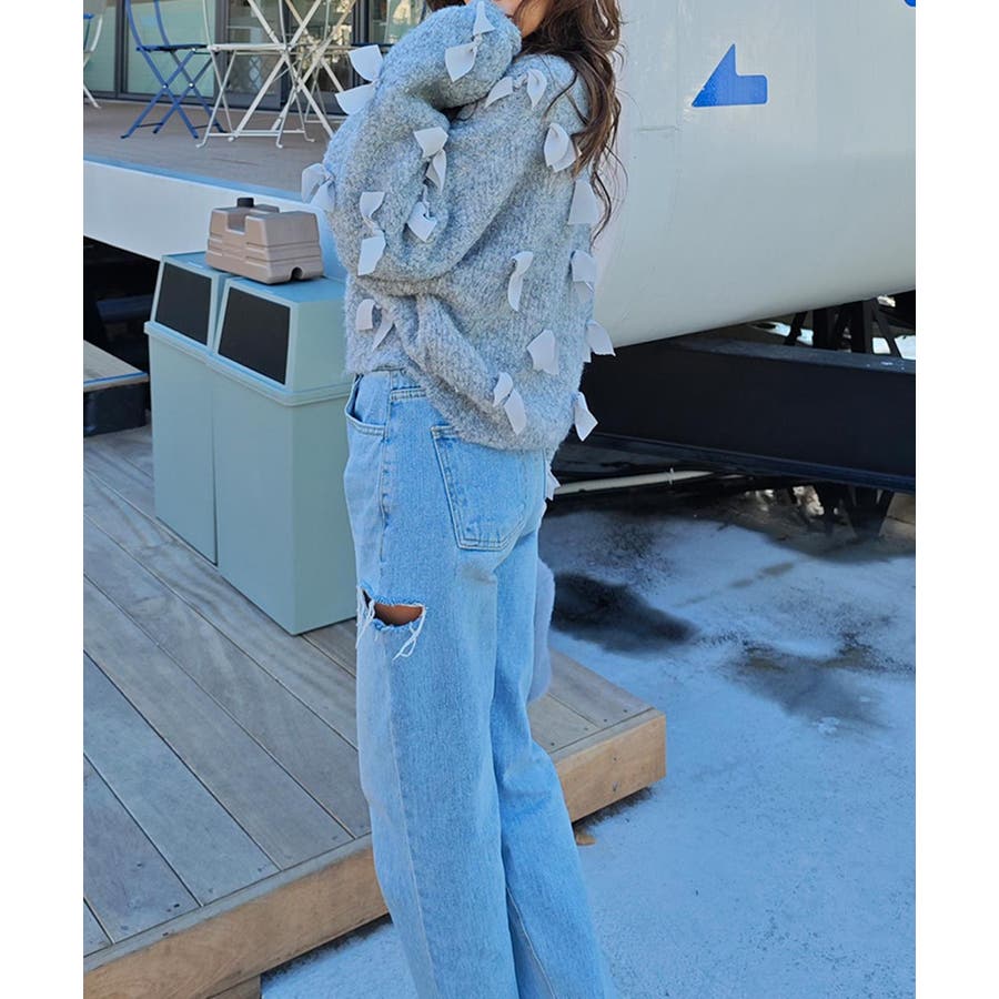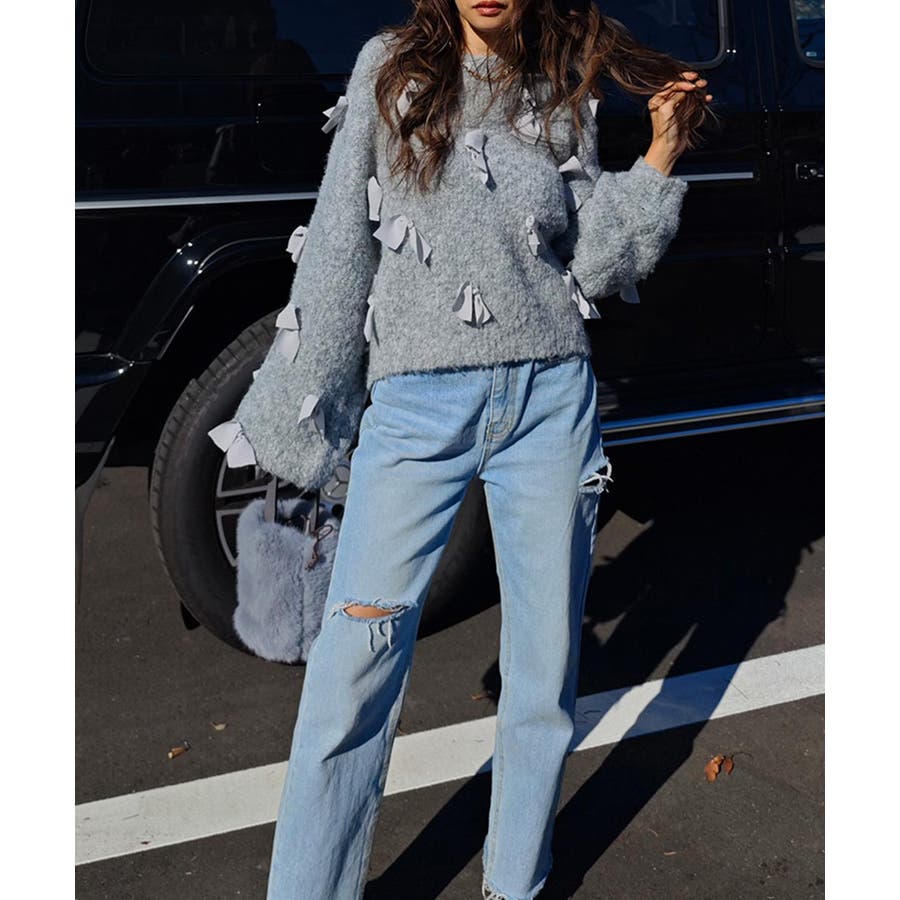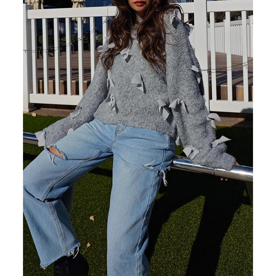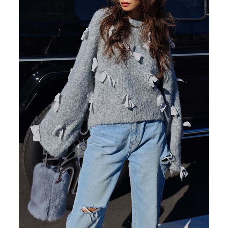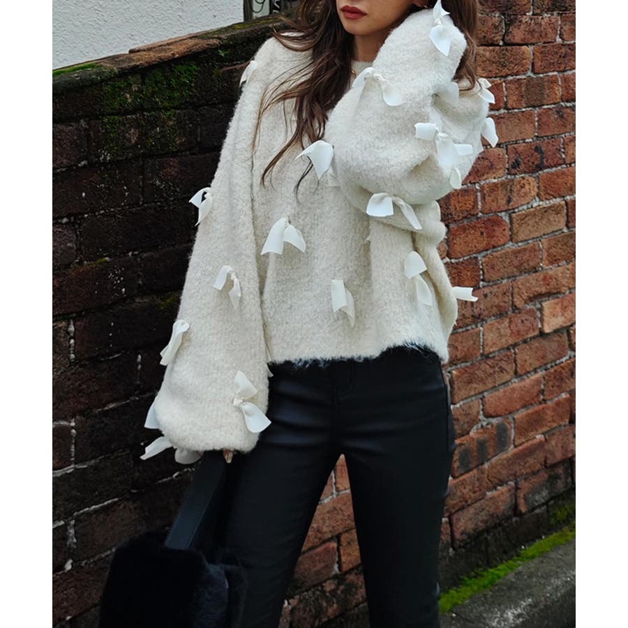 全体的にあしらわれたリボンが特徴的なニット