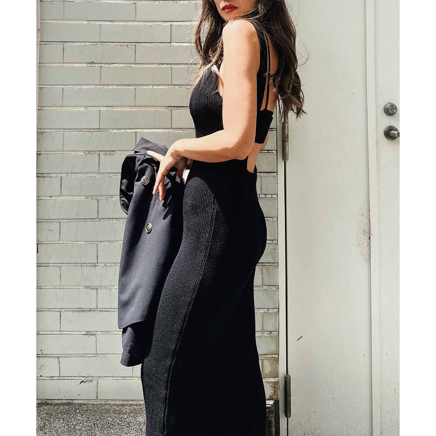バックデザインリブドレス esutoreja ワンピース レディース トレンド