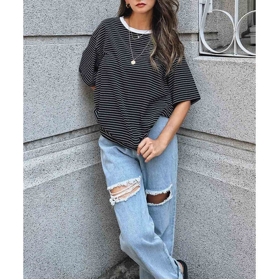 ・オーバーサイズのTシャツで華奢見え