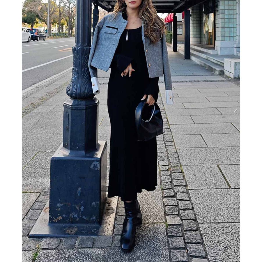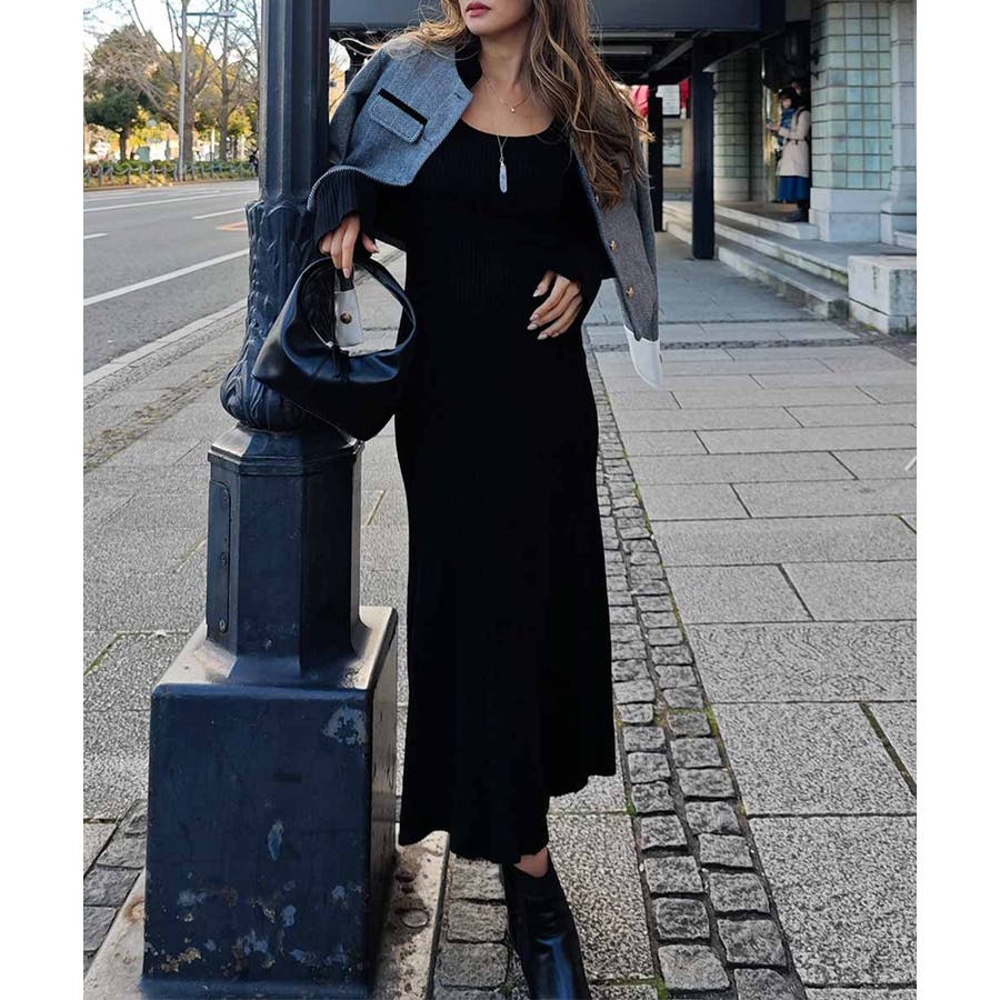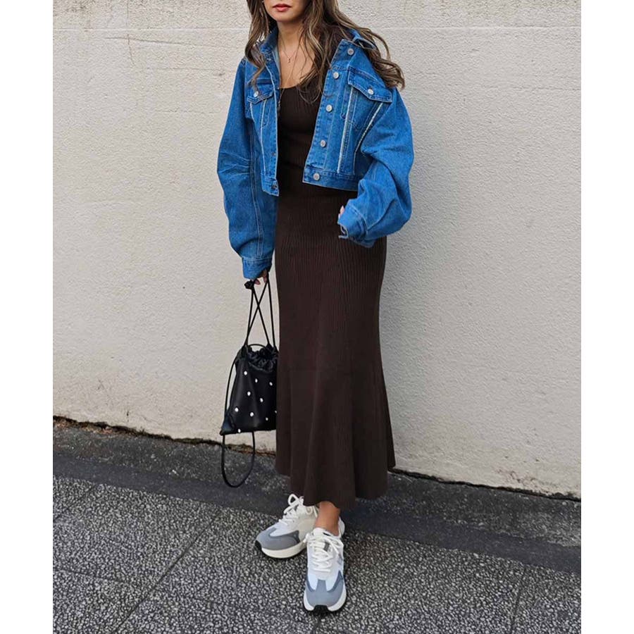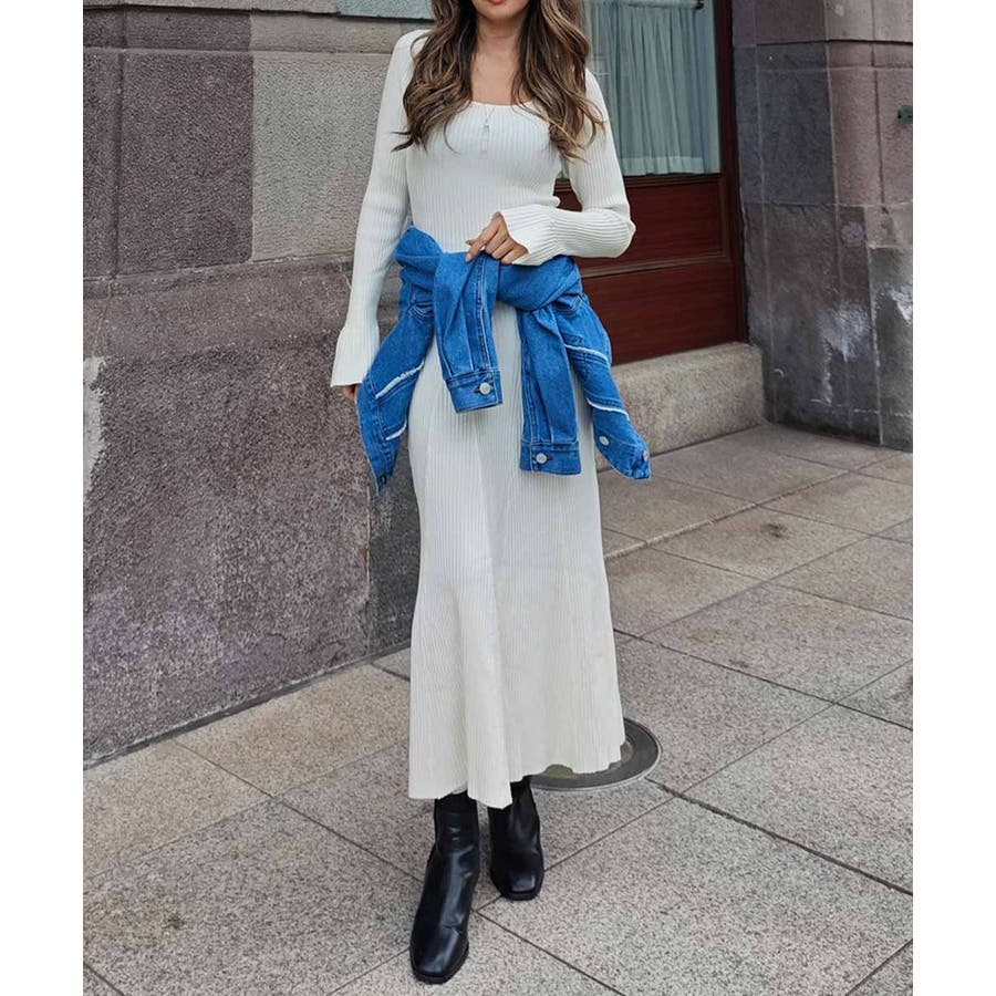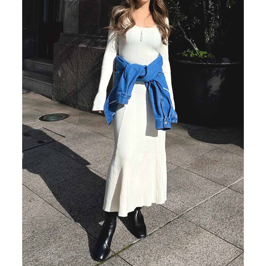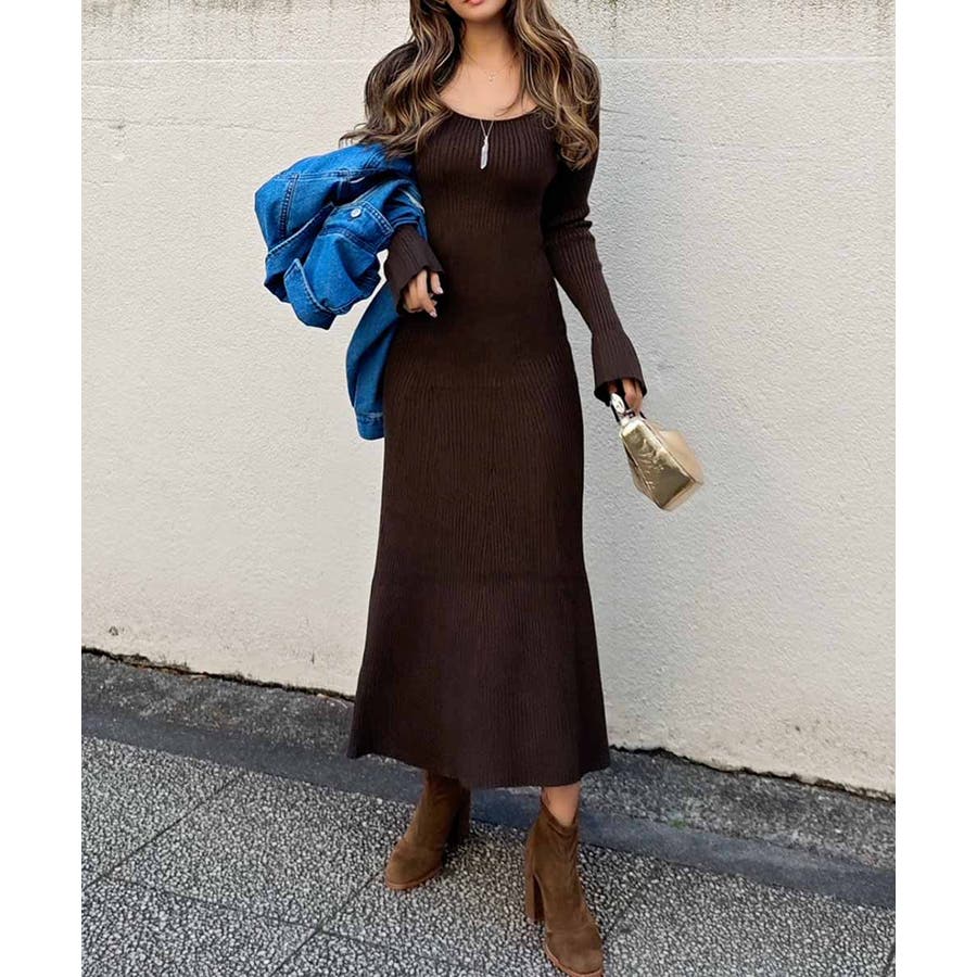 リブニットフレアドレス