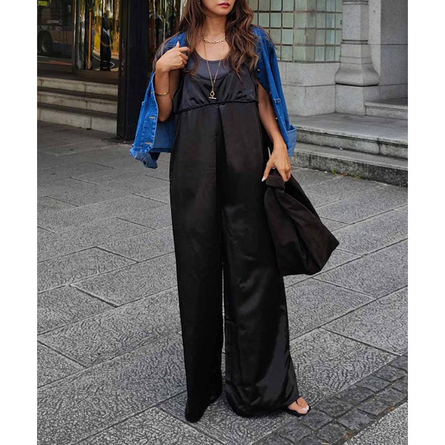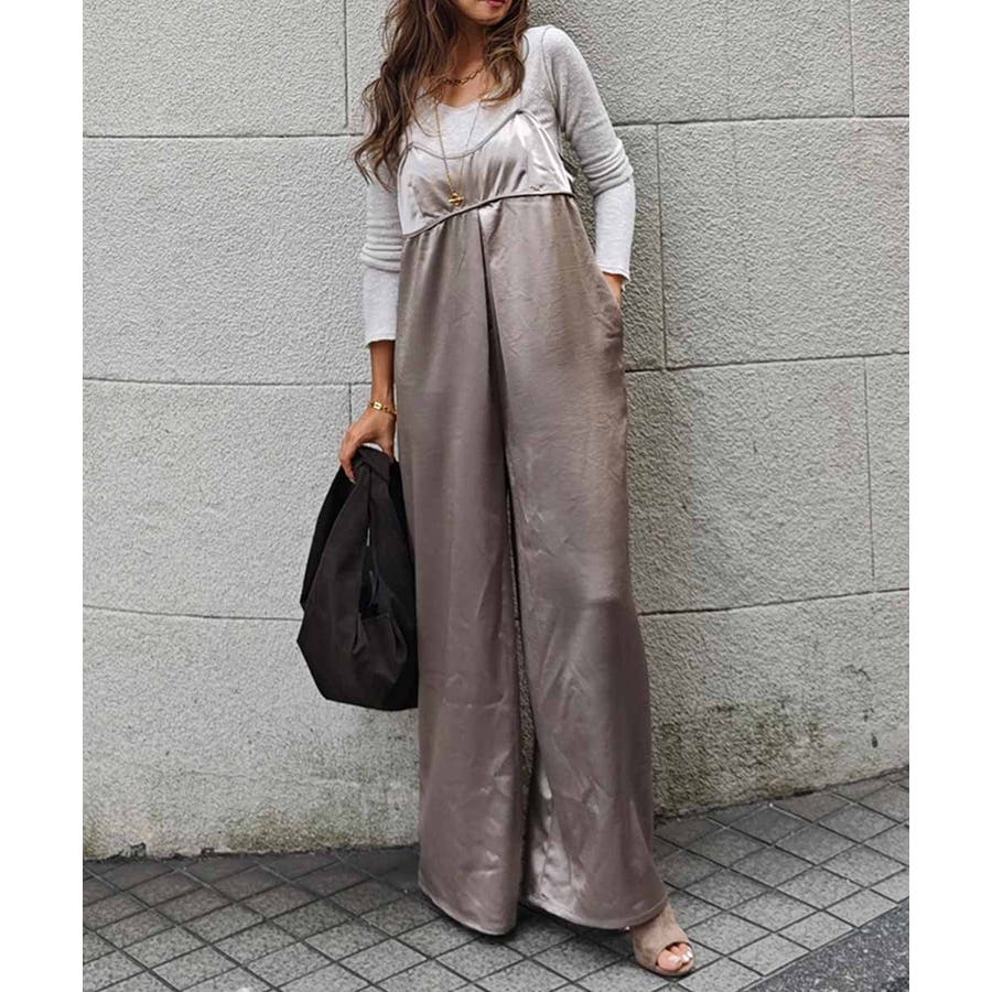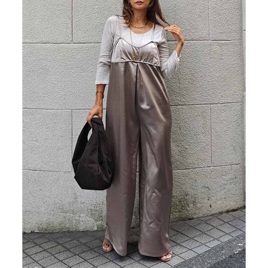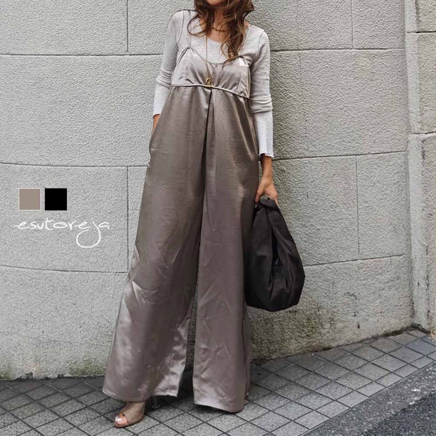 サテンキャミソールオールインワンesutoreja ワンピース スタイルアップ
