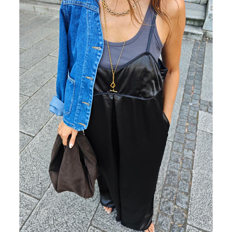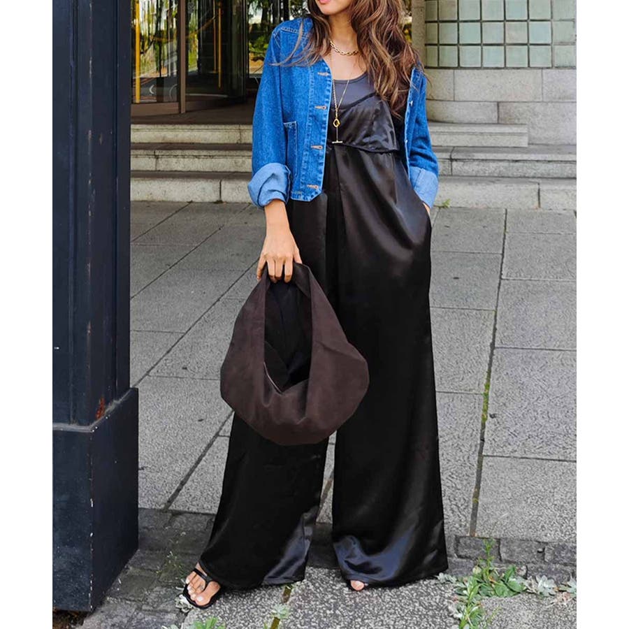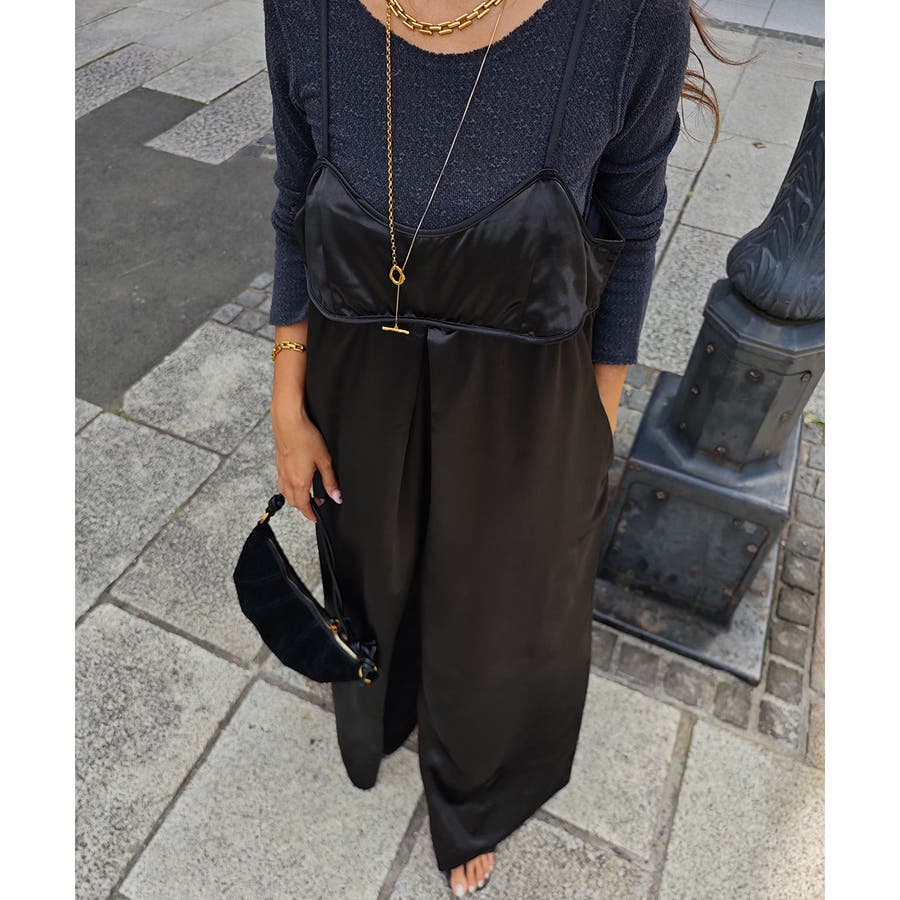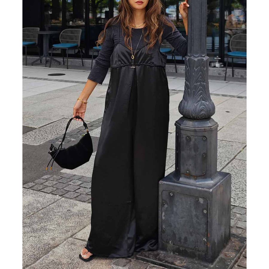 サテンキャミソールオールインワンesutoreja ワンピース スタイルアップ