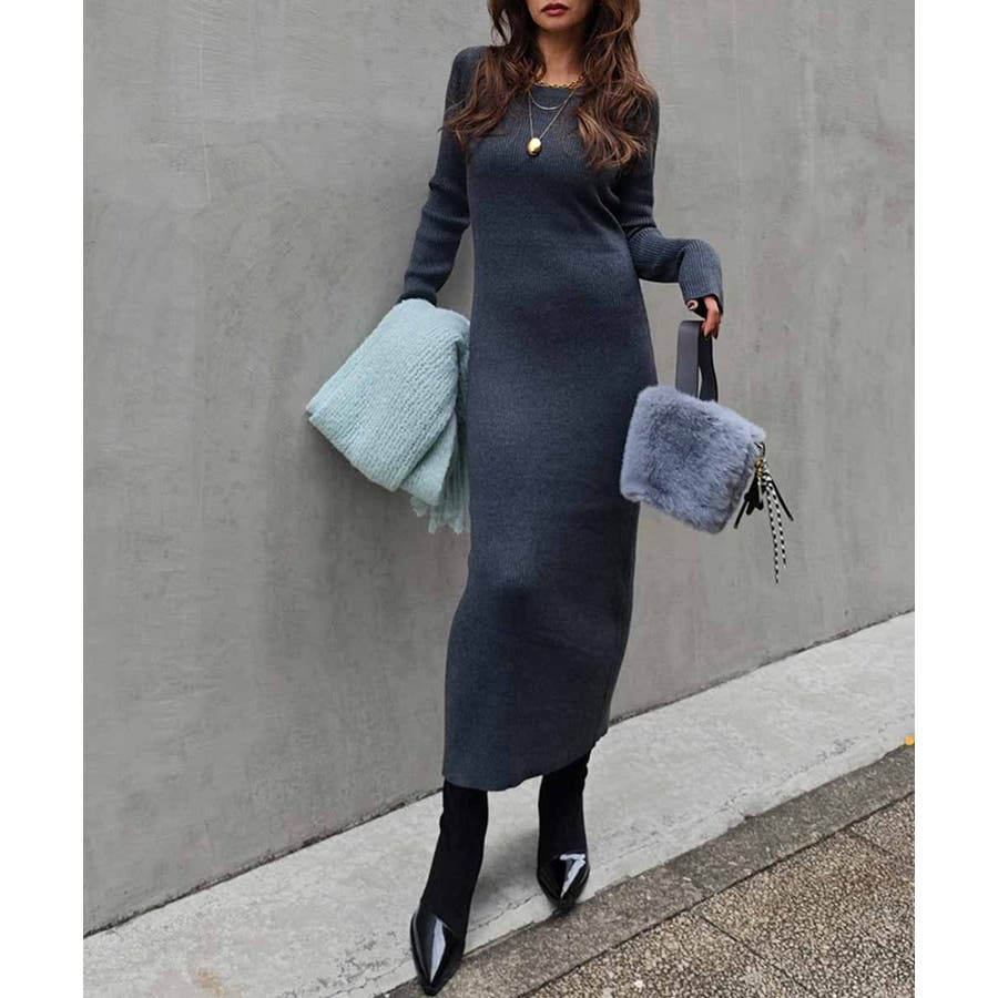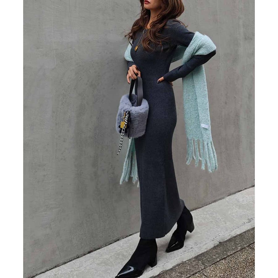 リブニットロングスリーブワンピースesutoreja ワンピース スタイルアップ