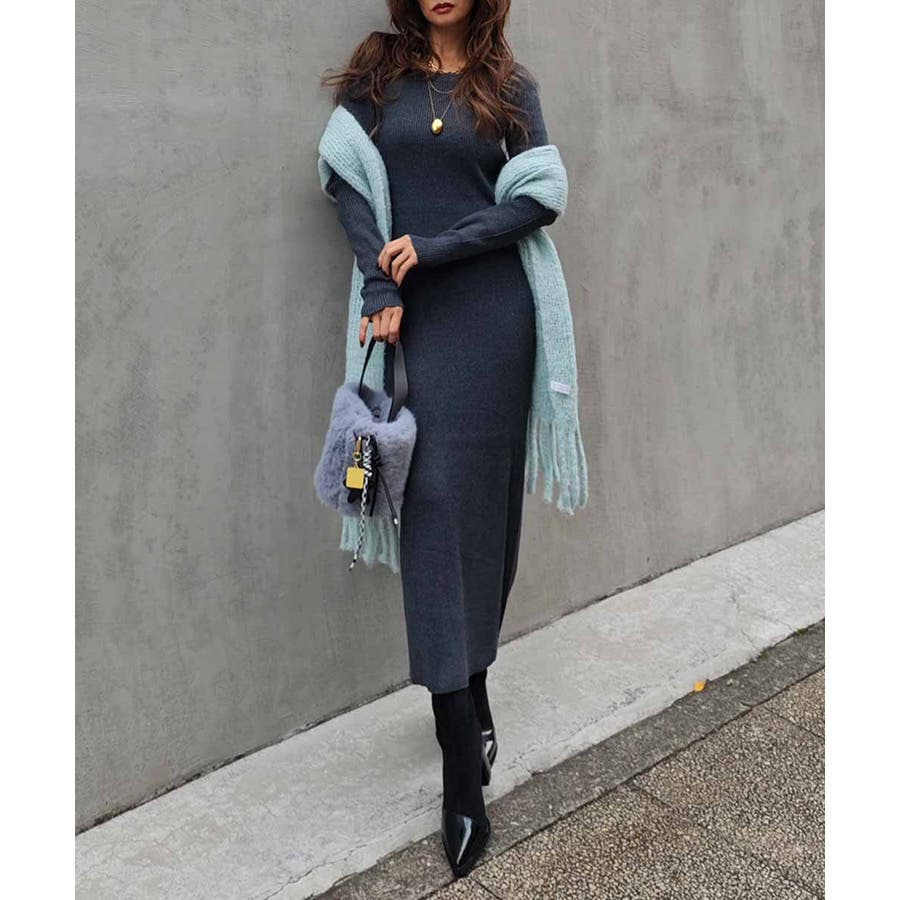 1枚で完結し、大人ムードで着こなせるニットワンピースです