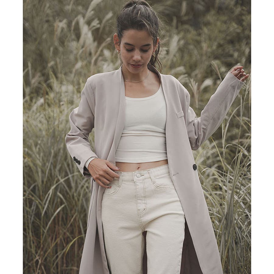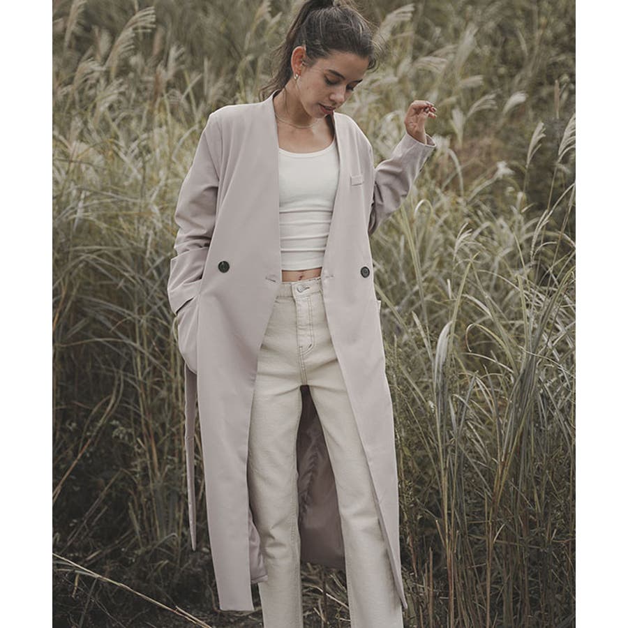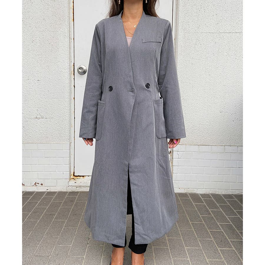 ノーカラーロングコート