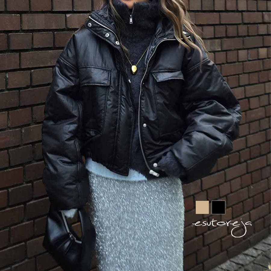 フラップポケットダウンジャケットesutoreja アウター スタイルアップ