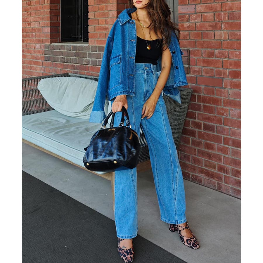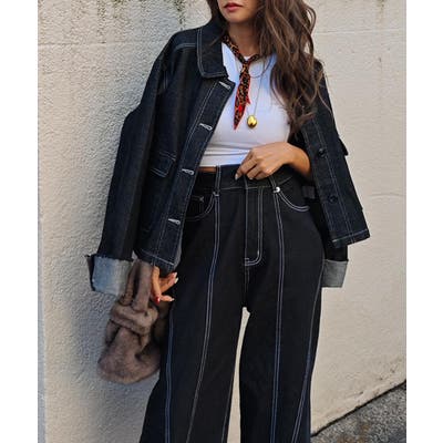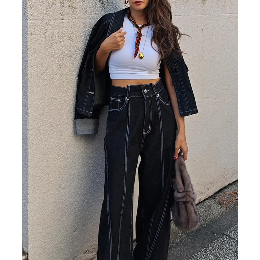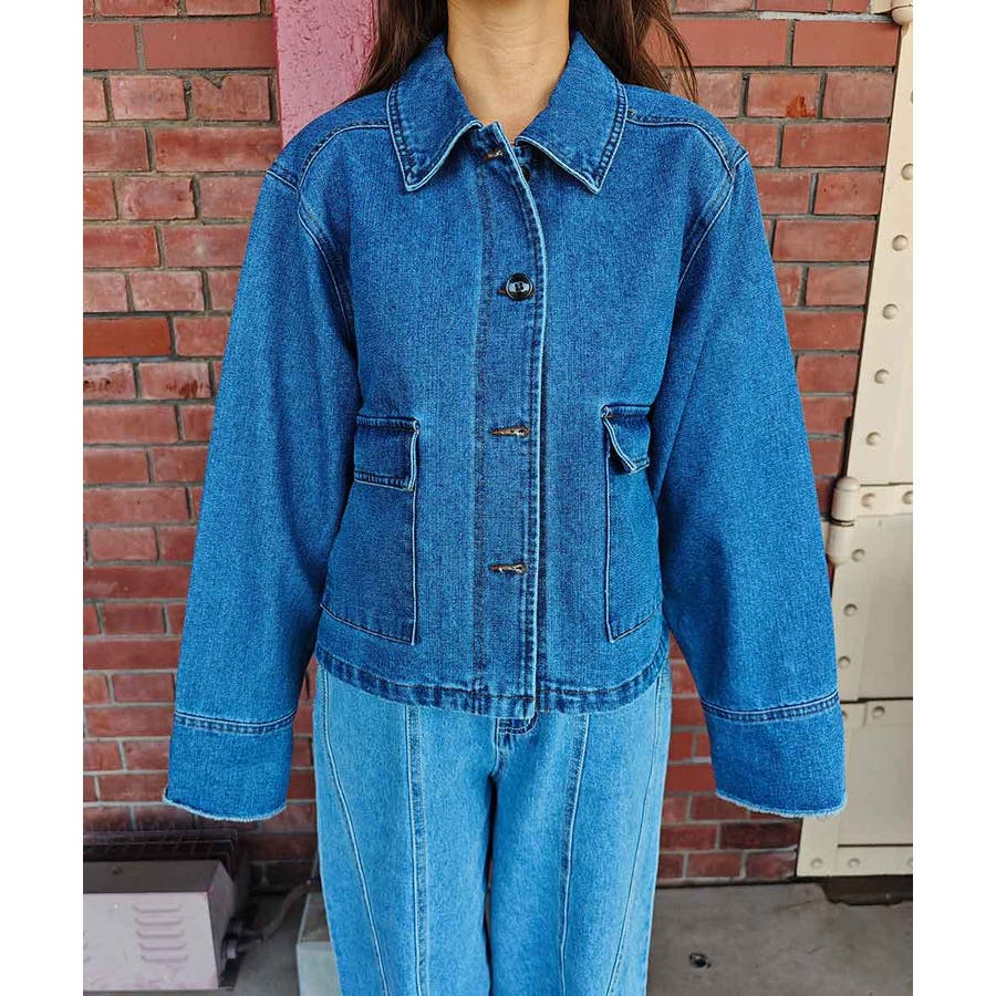 ステッチデニムカバーオールesutoreja アウター スタイルアップ