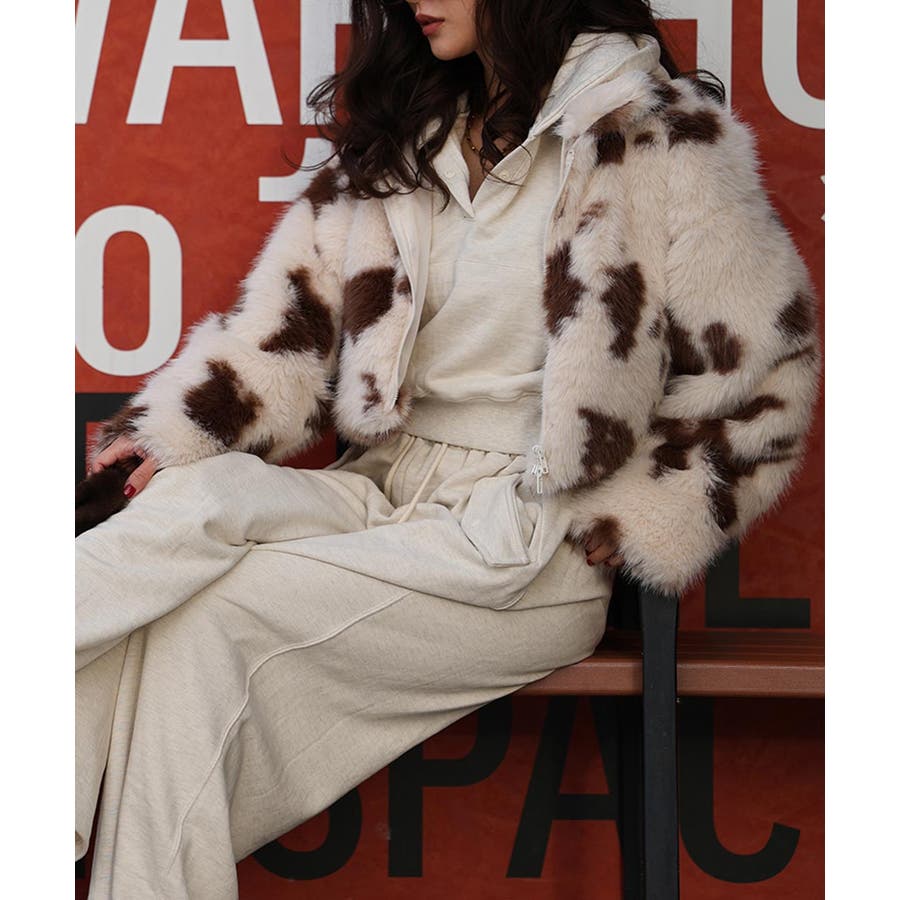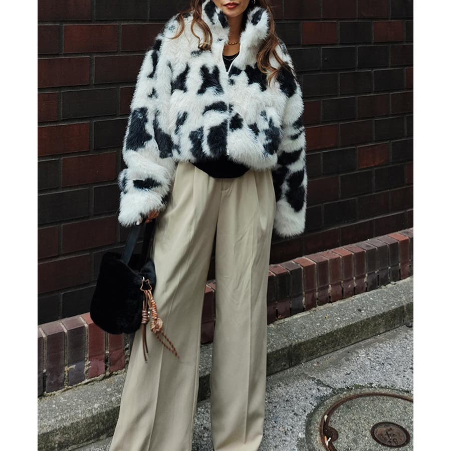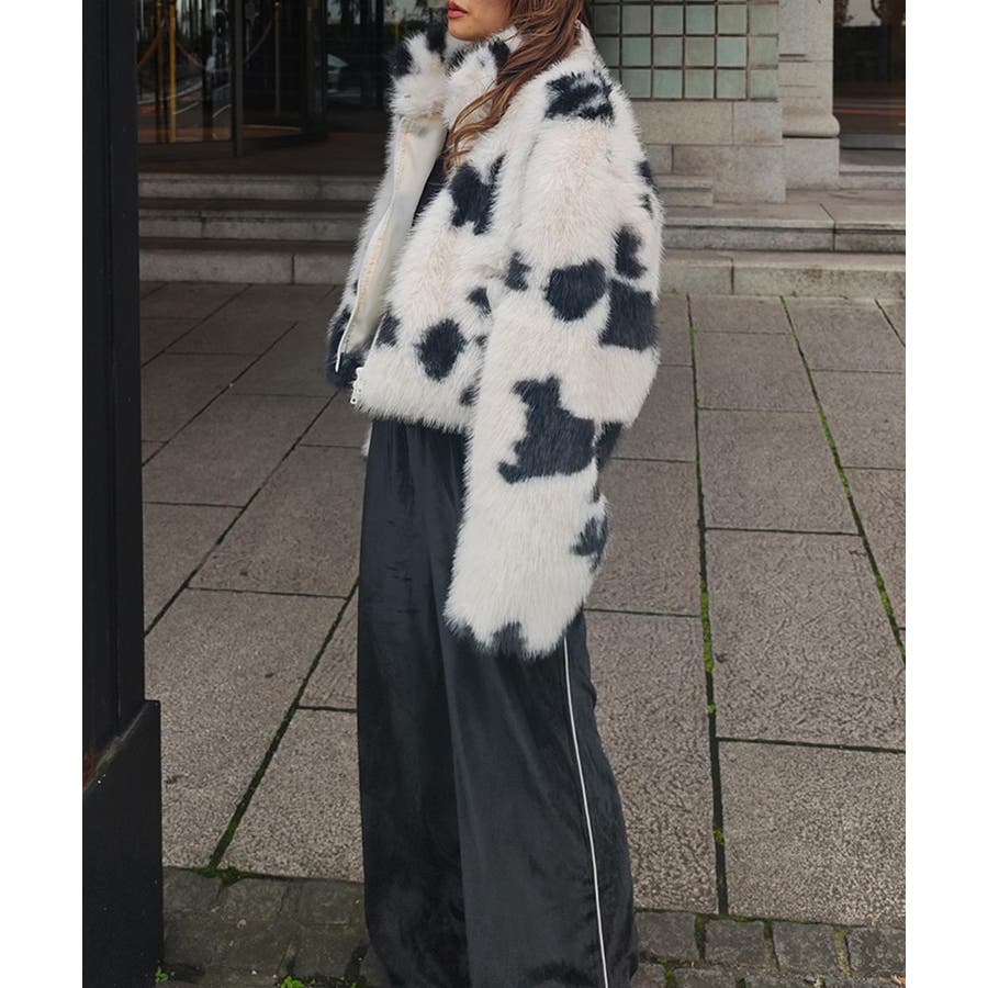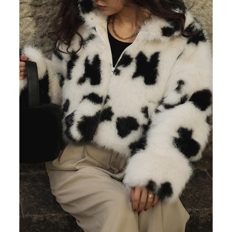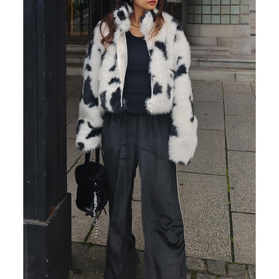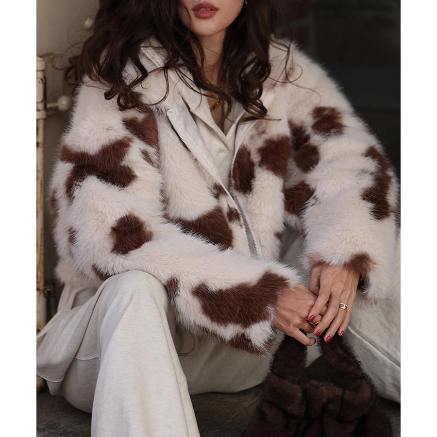 存在感たっぷり!トレンド感あるカウ柄のフェイクファージャケット