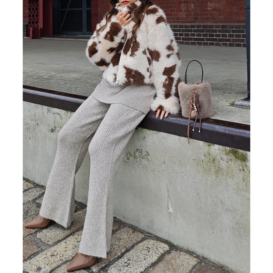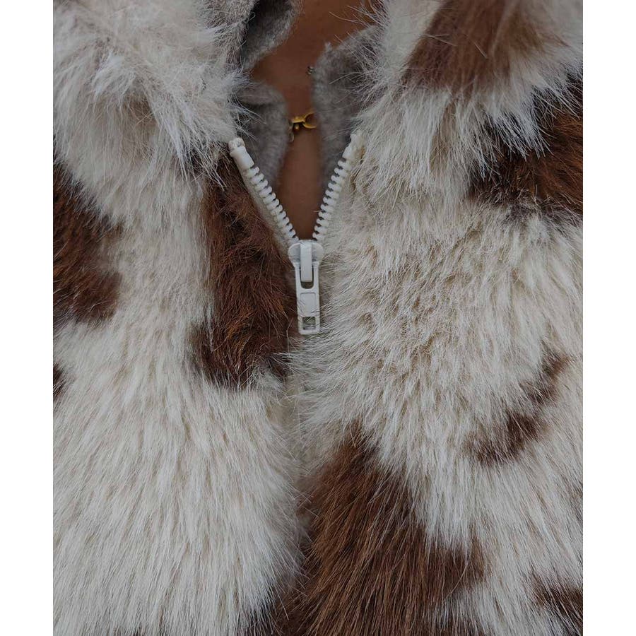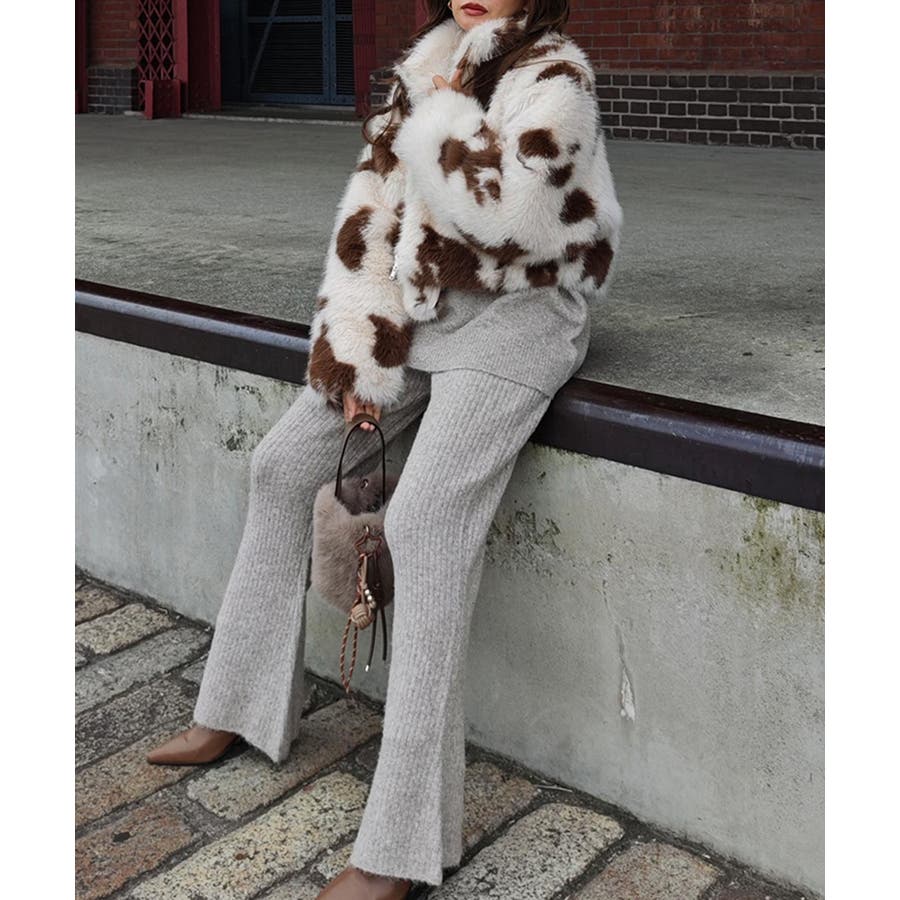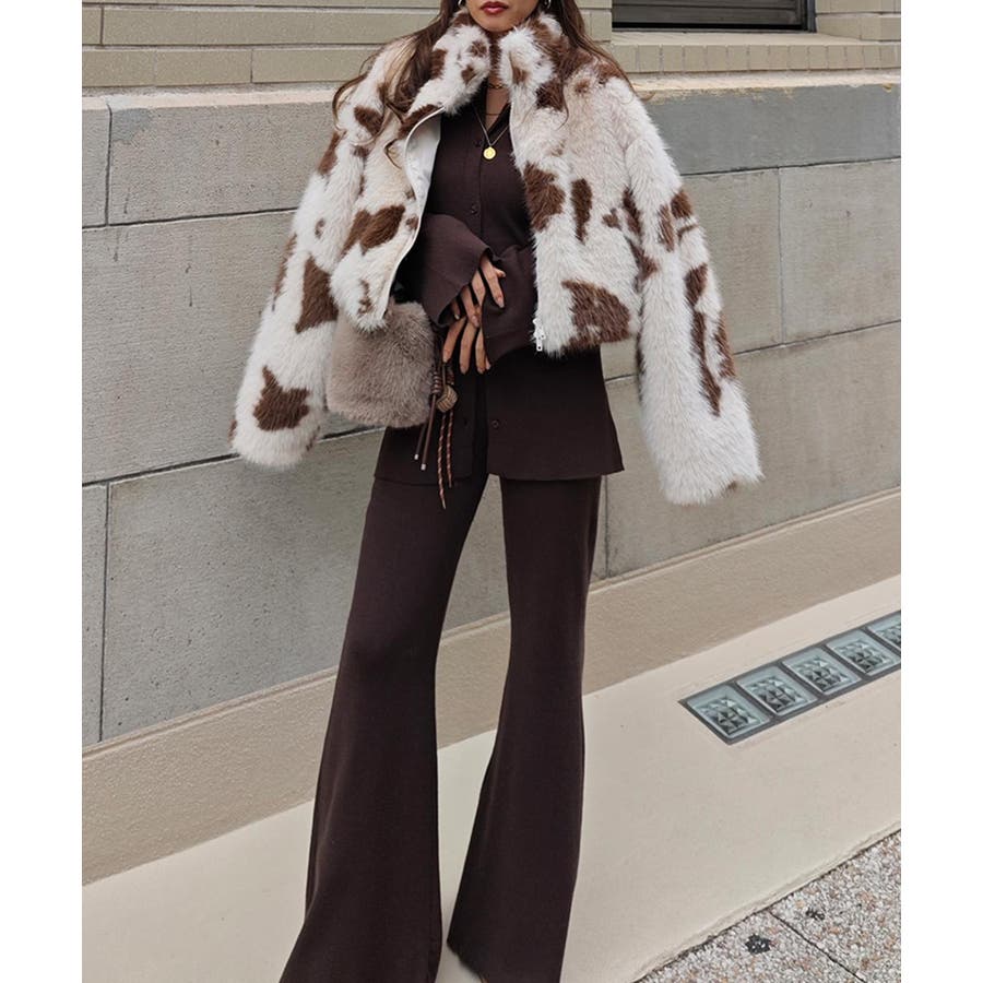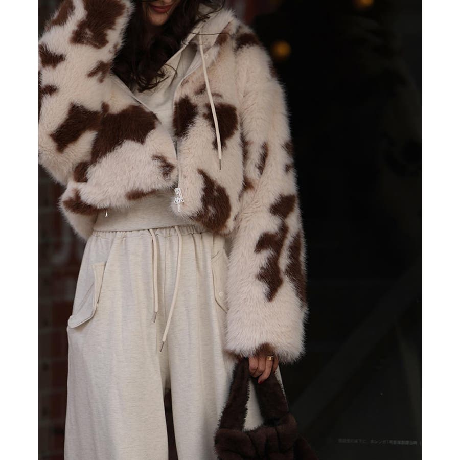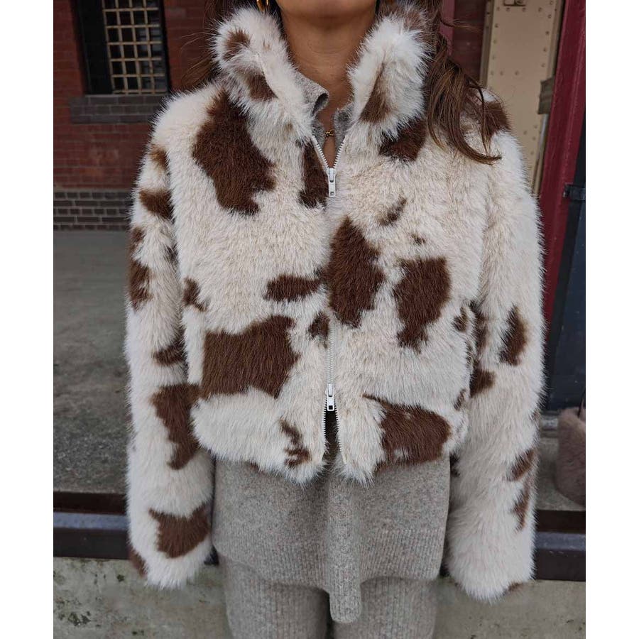 存在感たっぷり!トレンド感あるカウ柄のフェイクファージャケット