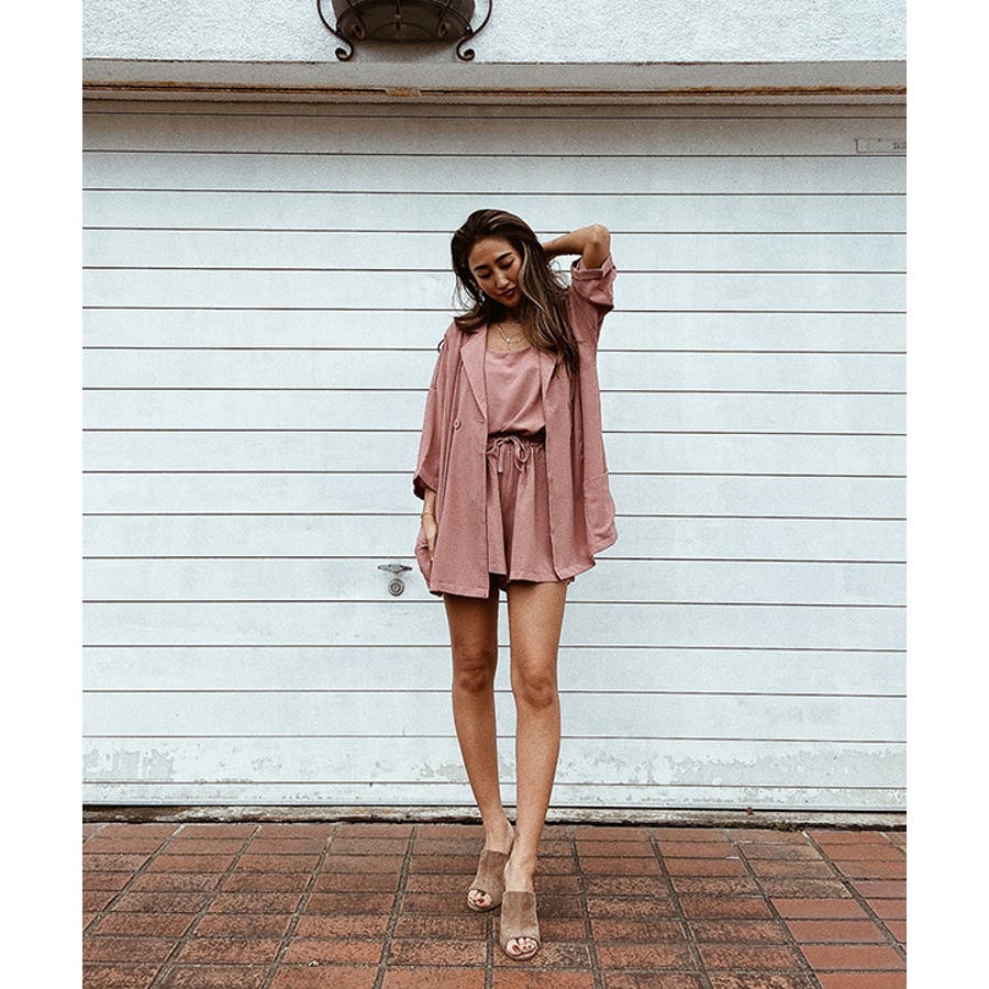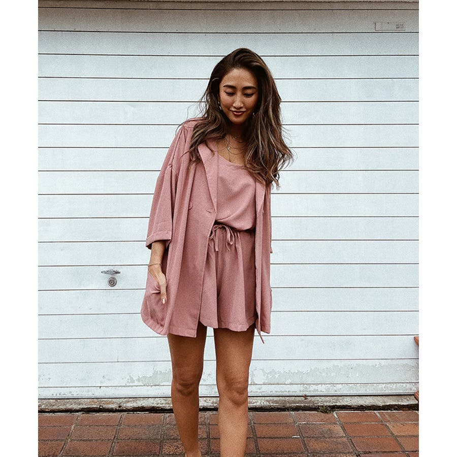 セットで着てクリアサンダルと合わせるのがオススメコーデです。