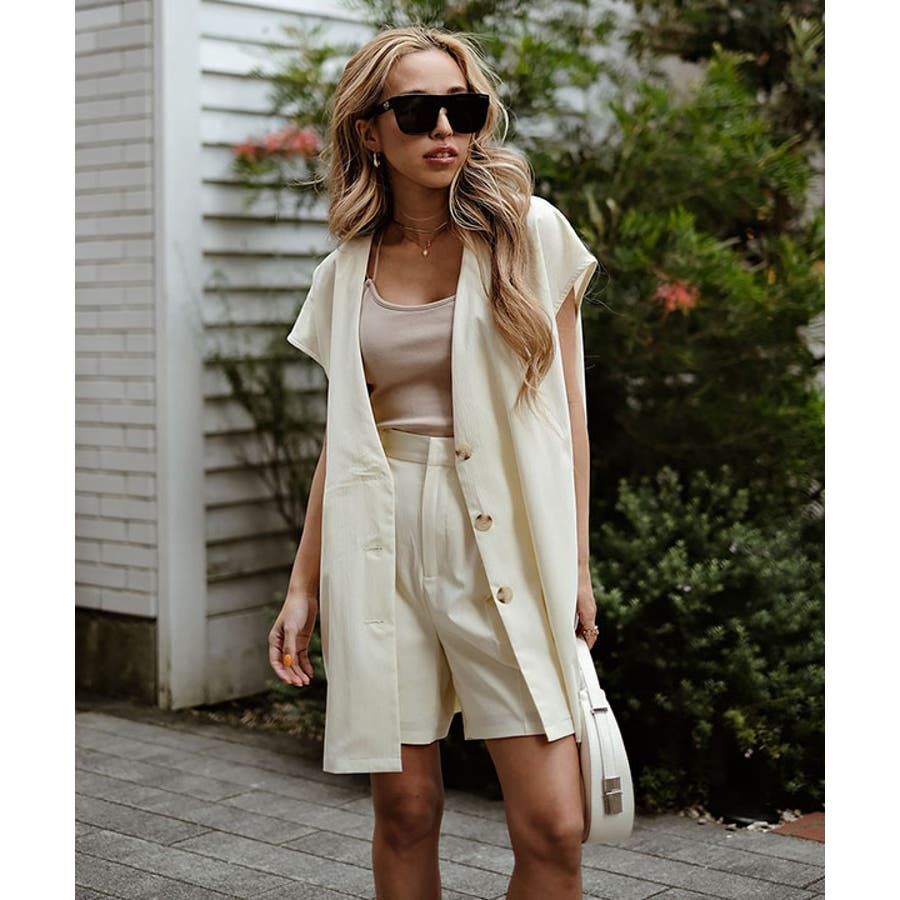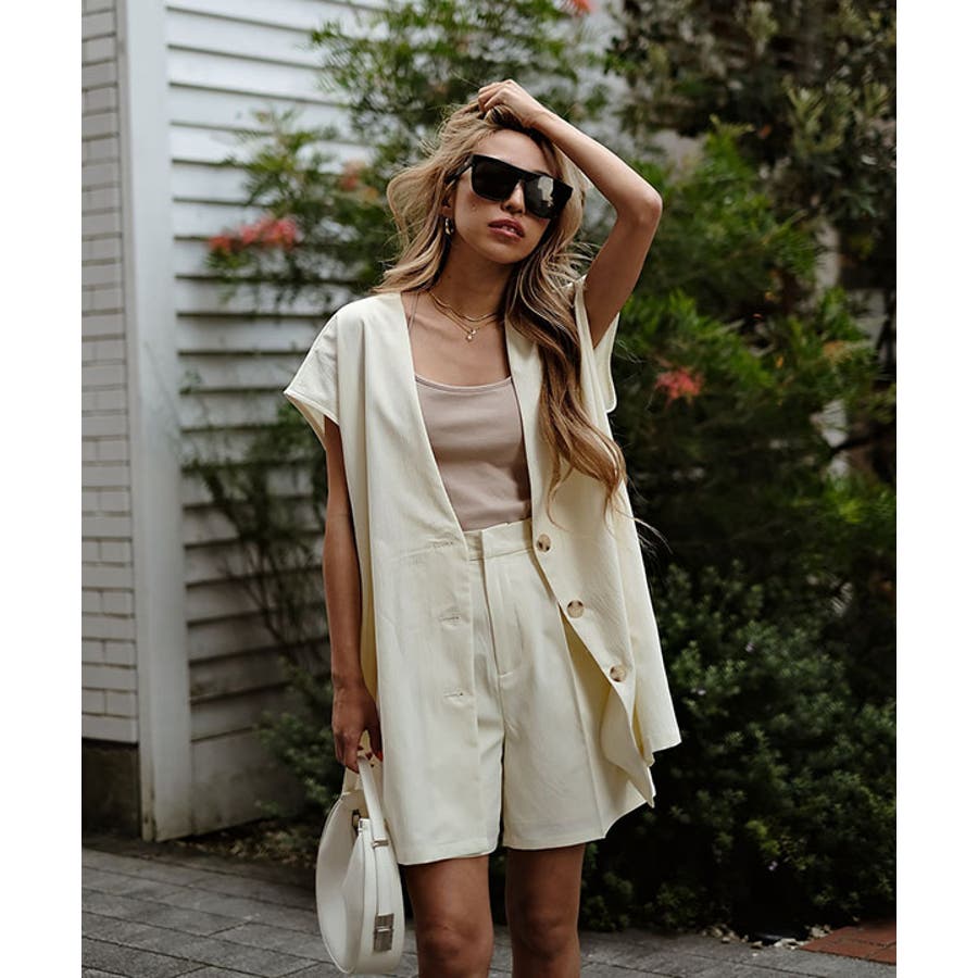 ノーカラーショートパンツセットアップ esutoreja セットアップ