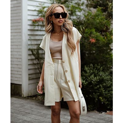 ノーカラーショートパンツセットアップ