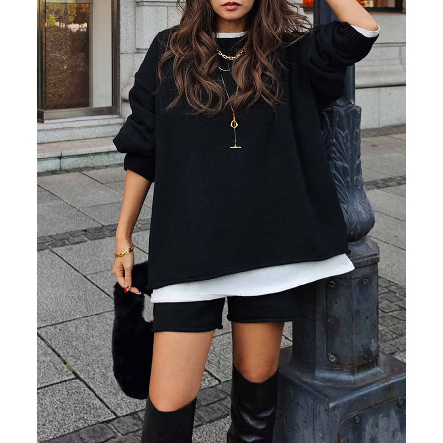 ニット生地なので簡単に旬なコーデが完成します。