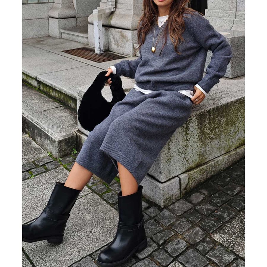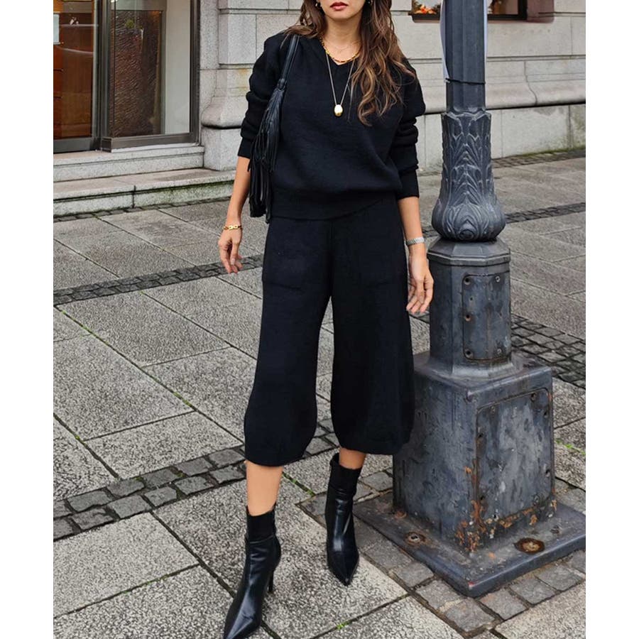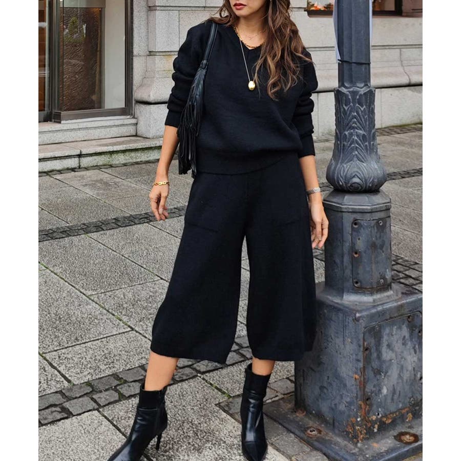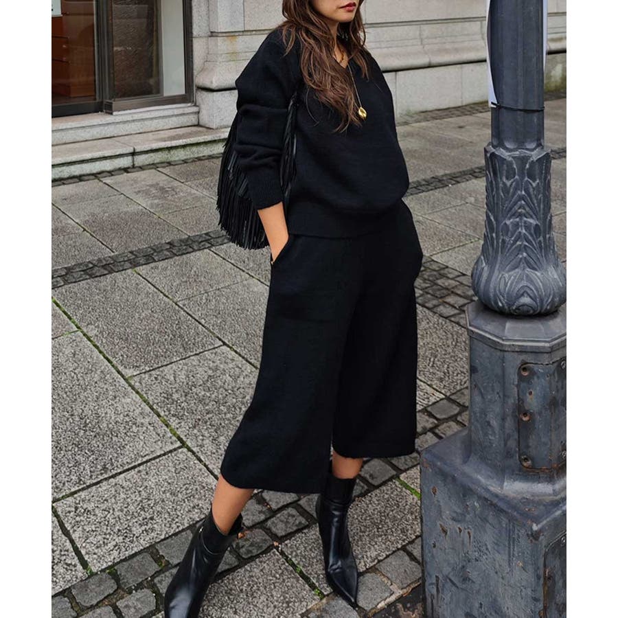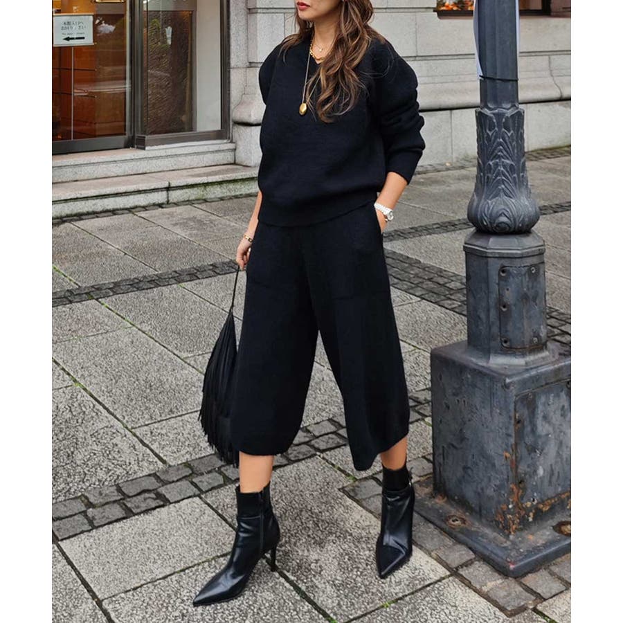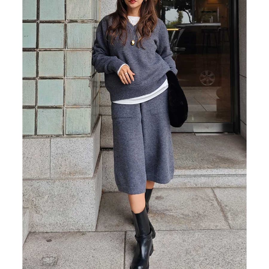 ニットはVネックが女性らしい抜け感を演出してくれます。