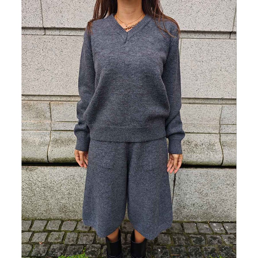 万能なVネックニットとハーフパンツのセットアップ