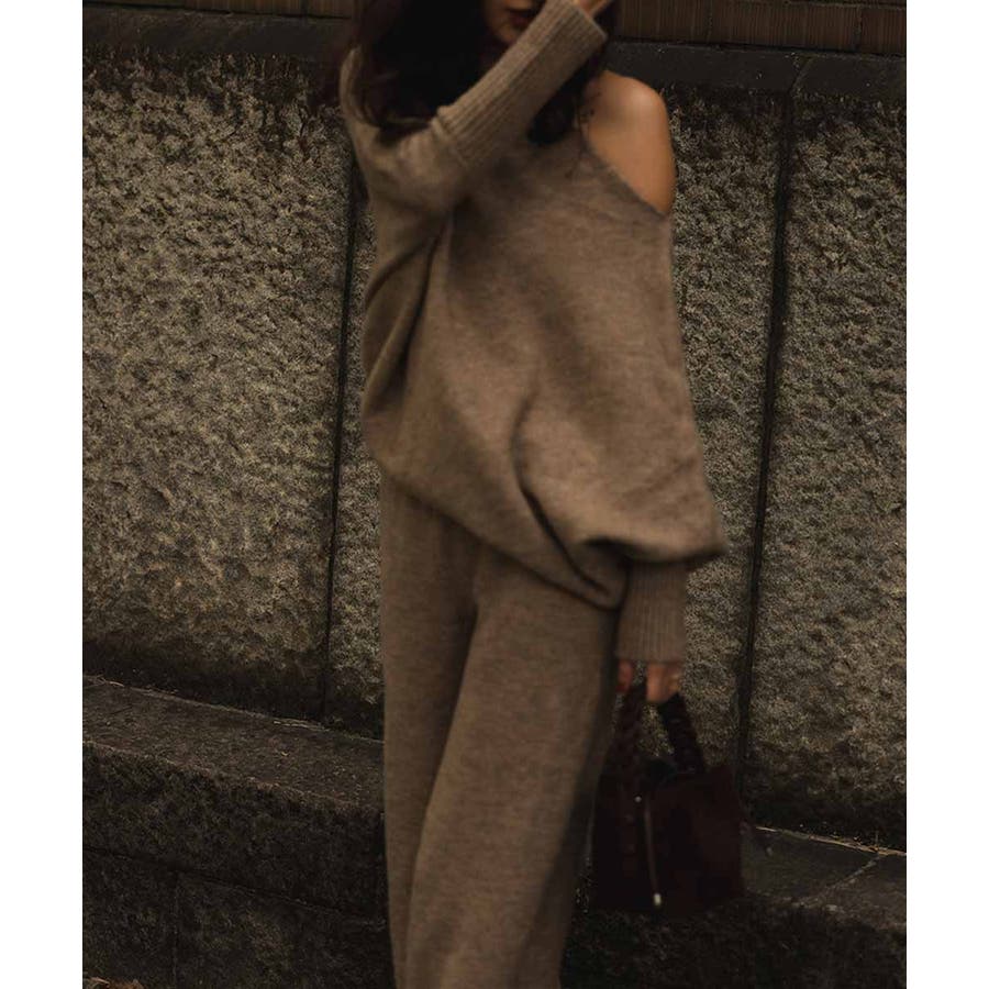 ワンショルダードルマンニットセットアップesutoreja セットアップ