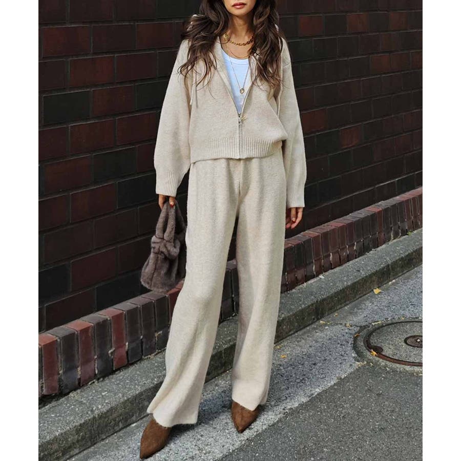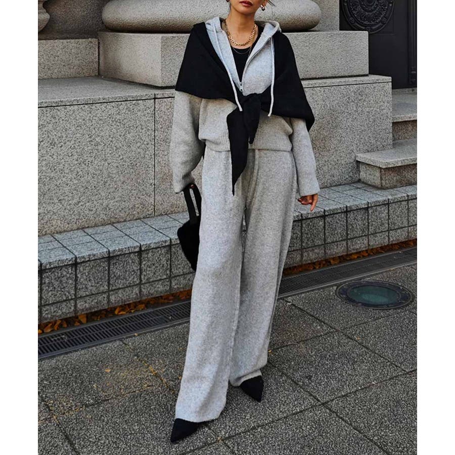ニットジップアップフーディセットアップesutoreja セットアップ スタイル…