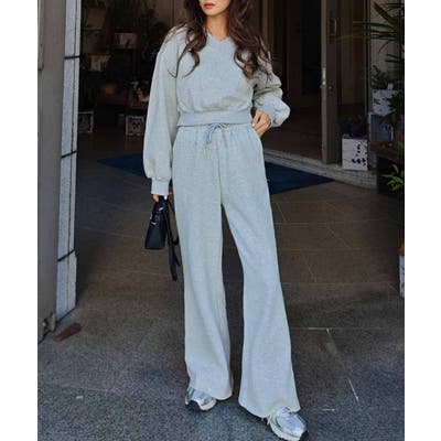 クロップド丈とルーズなシルエットが可愛い、スウェットセットアップ