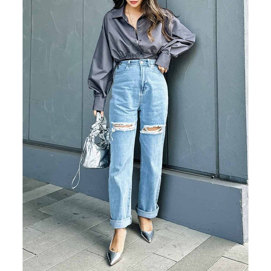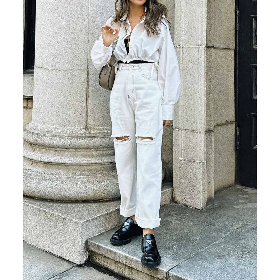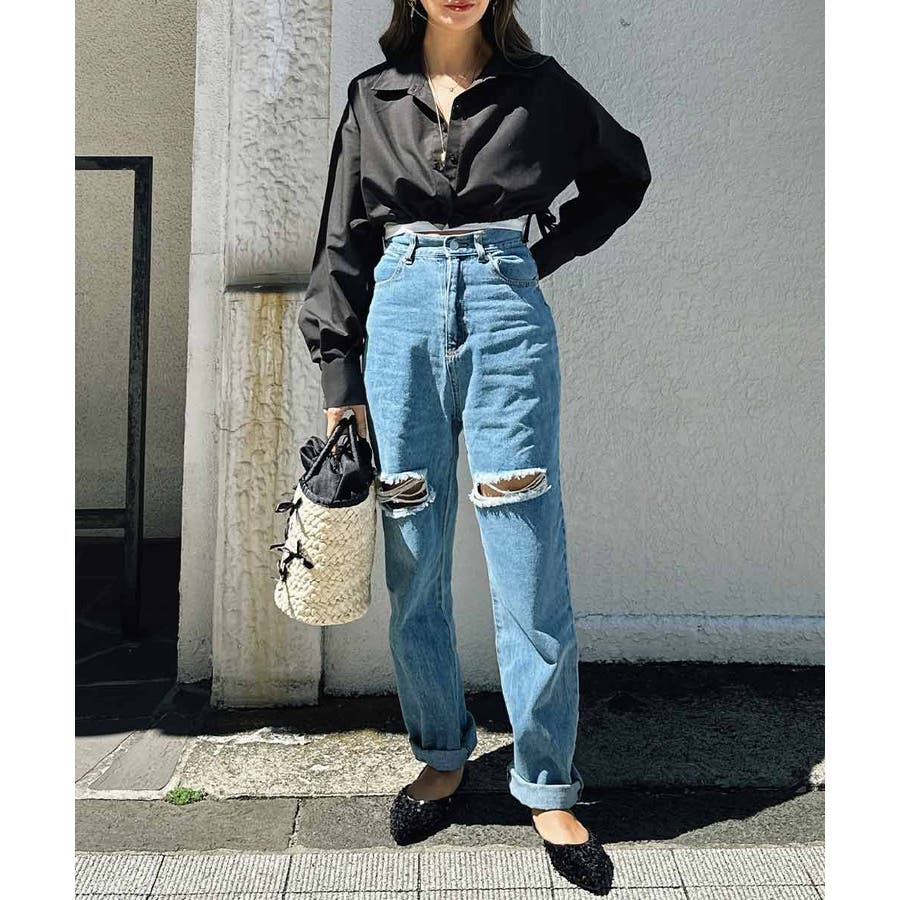 ショートリボンシャツ esutoreja シャツ レディース トレンド