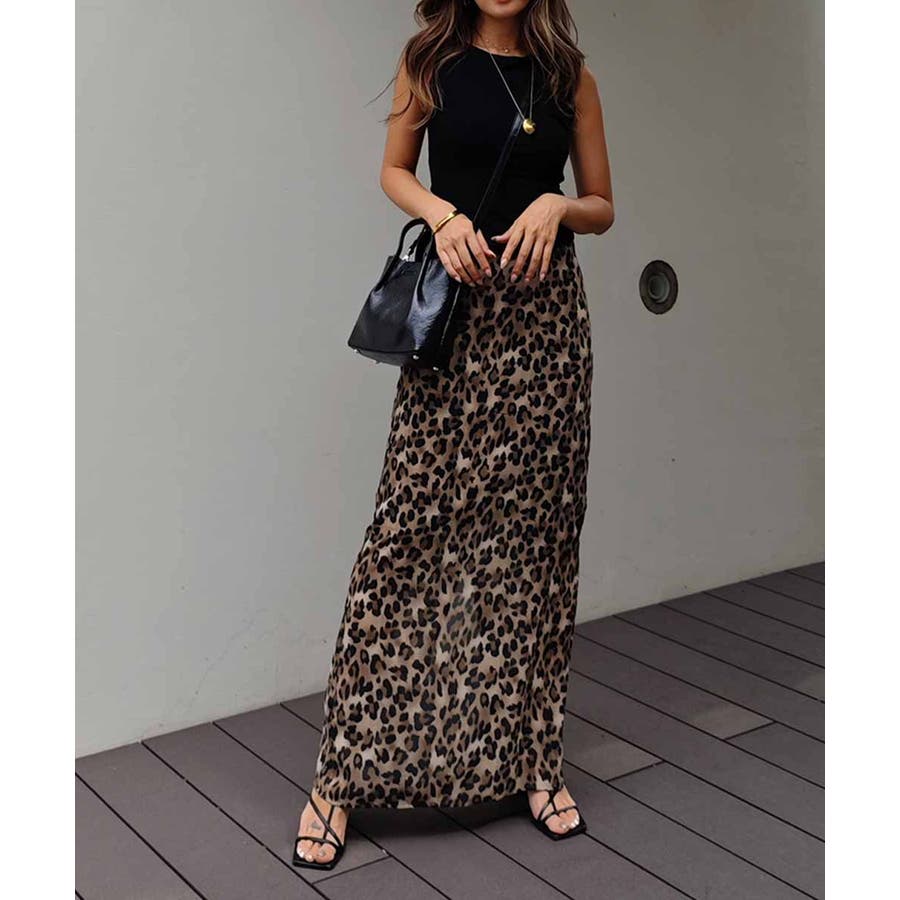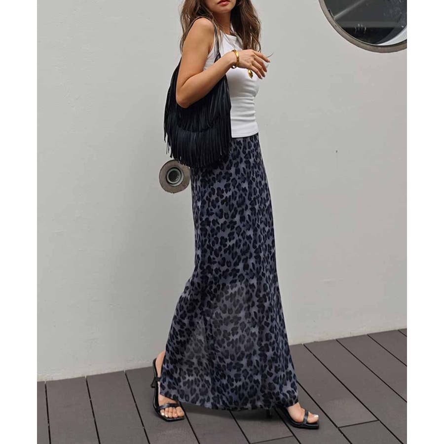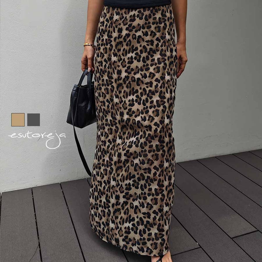 レオパードシフォンスカートesutoreja スカート スタイルアップ