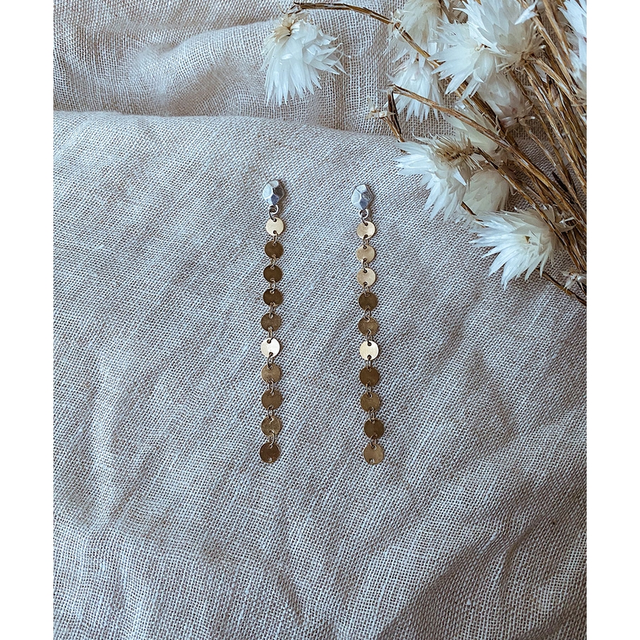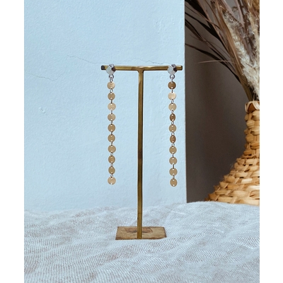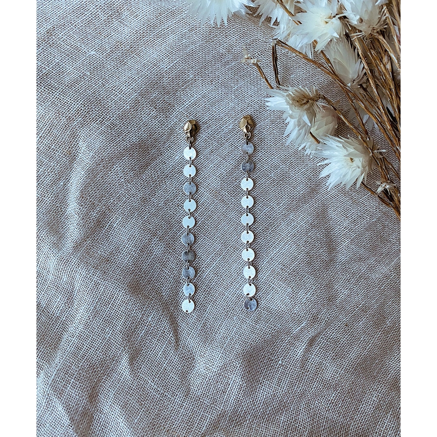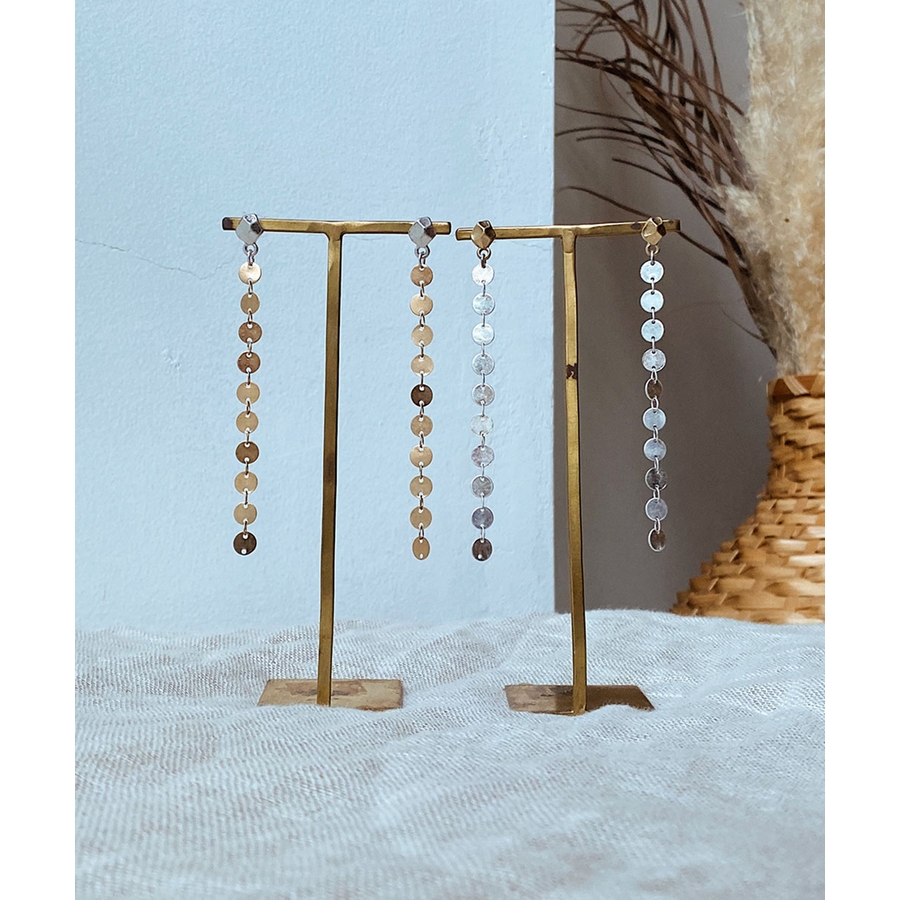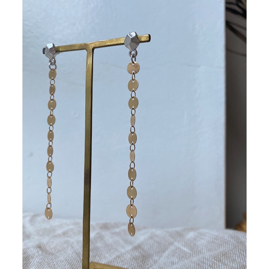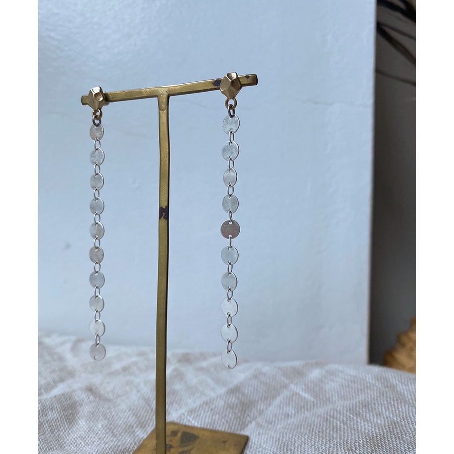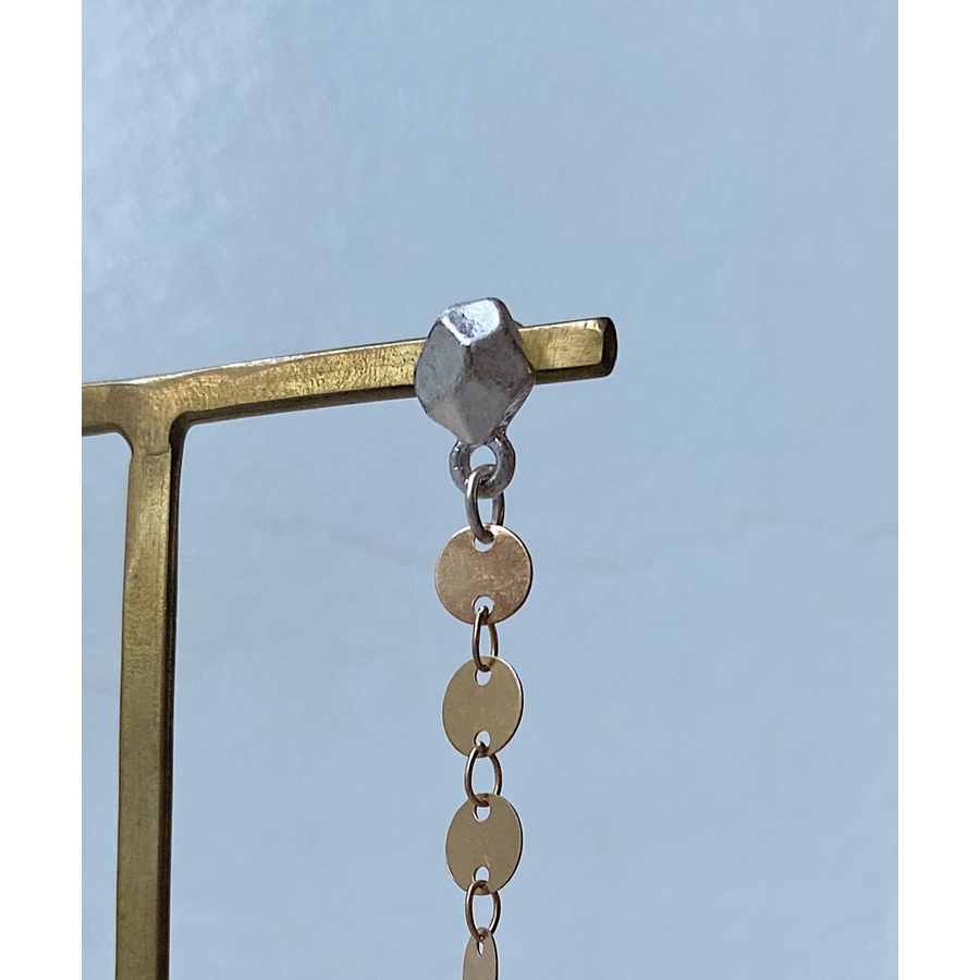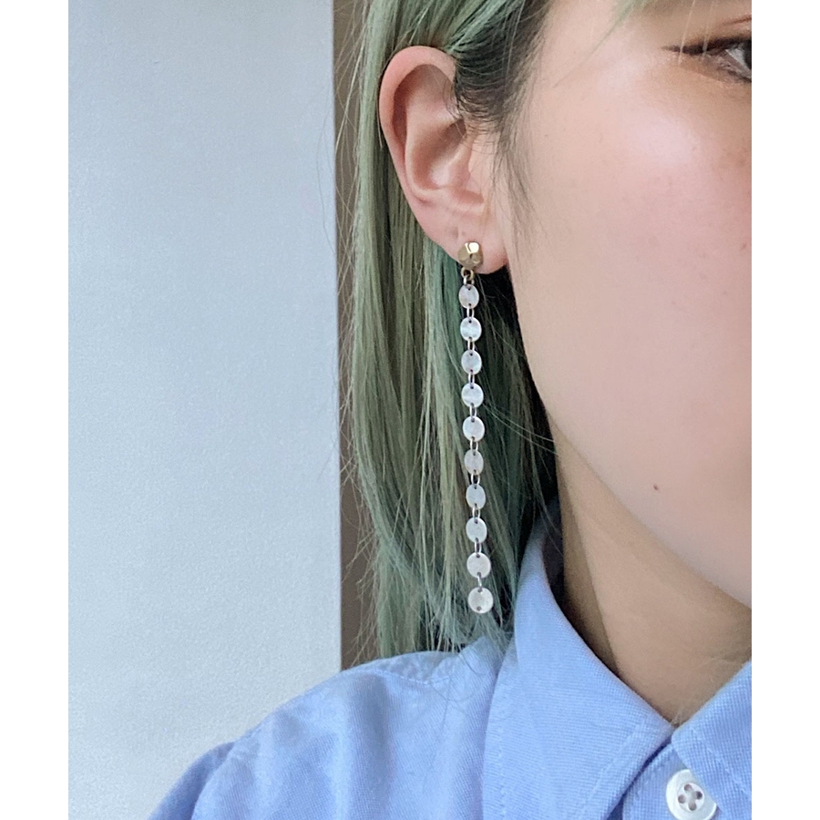 小さく丸いパーツがたくさん連なったユニークなデザインのピアスです!