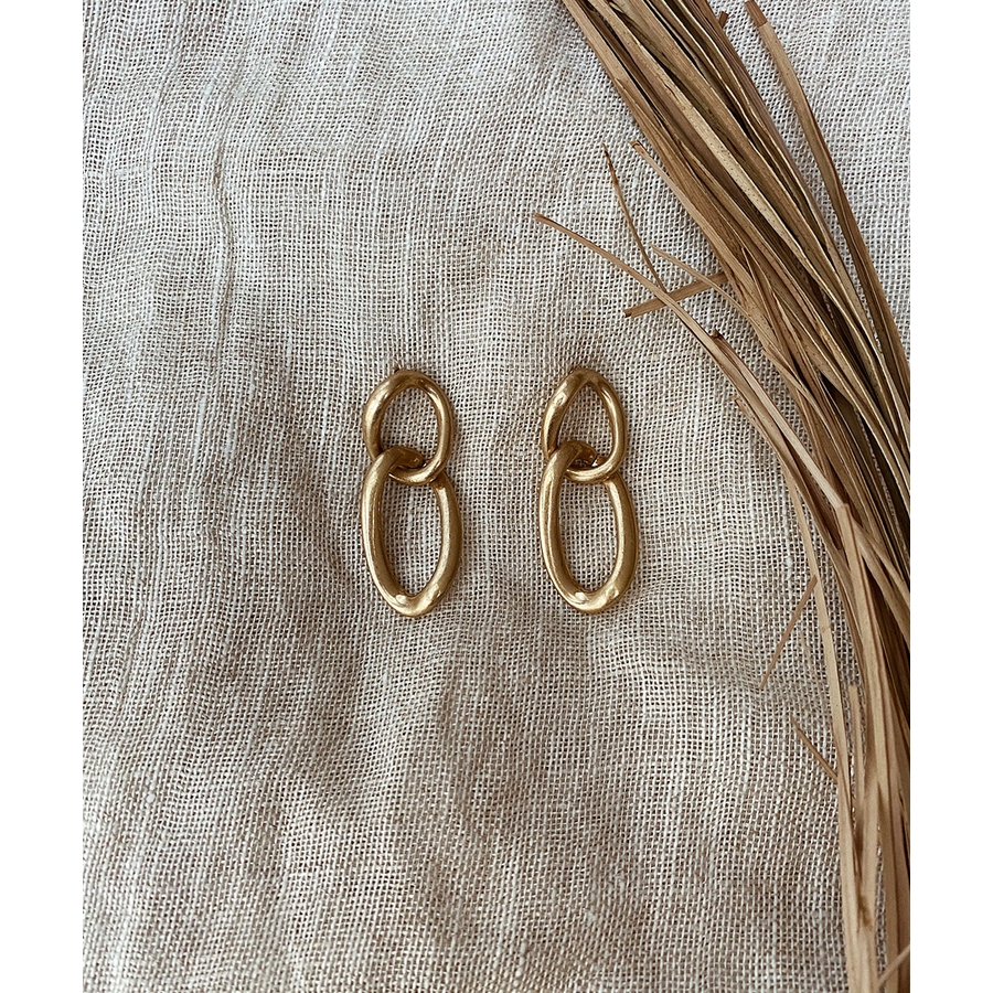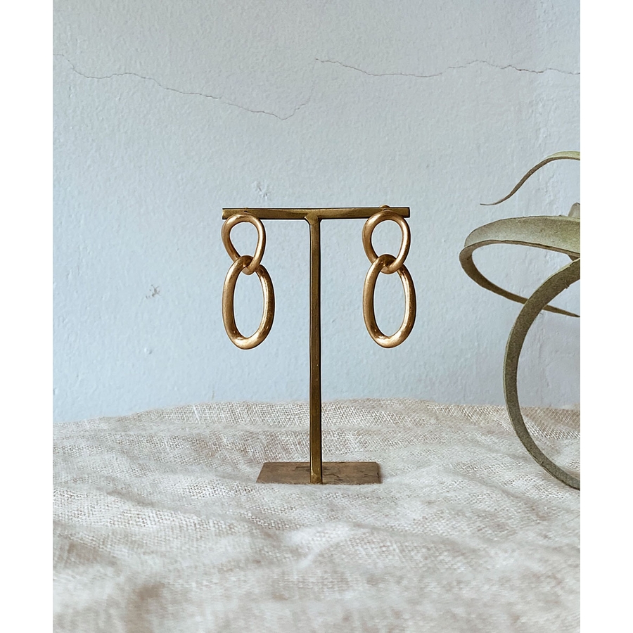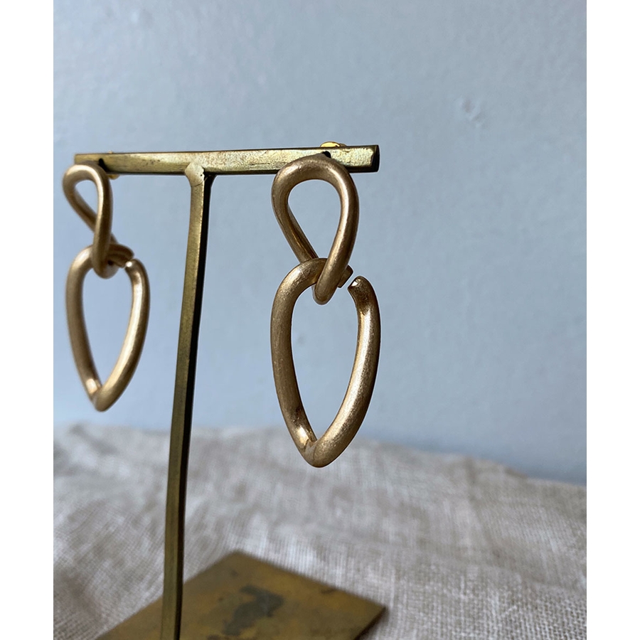 大きさの異なるパーツが連なったオシャレなデザインのピアス。