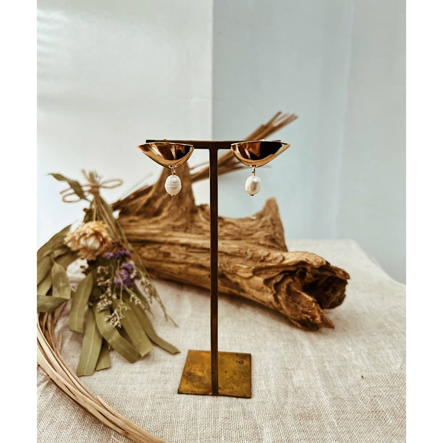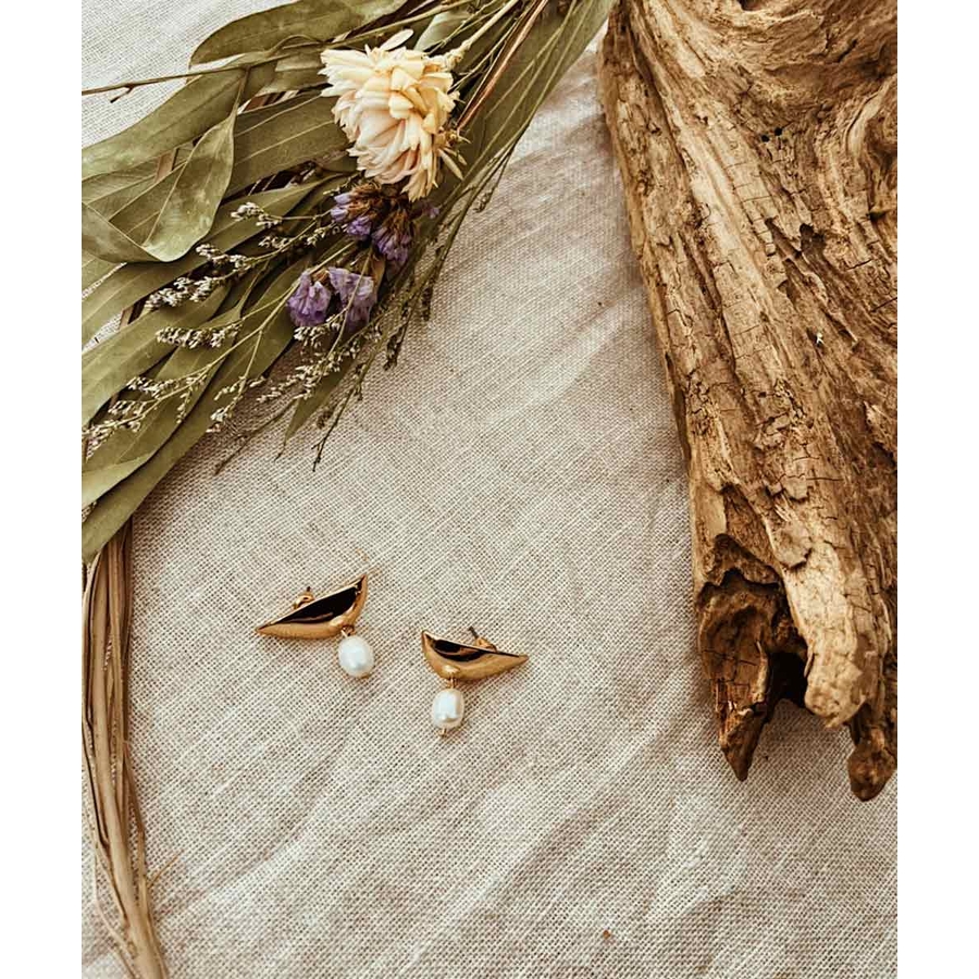 月のような形のメタルピアスが、耳たぶをかっこいい印象を与えてくれます