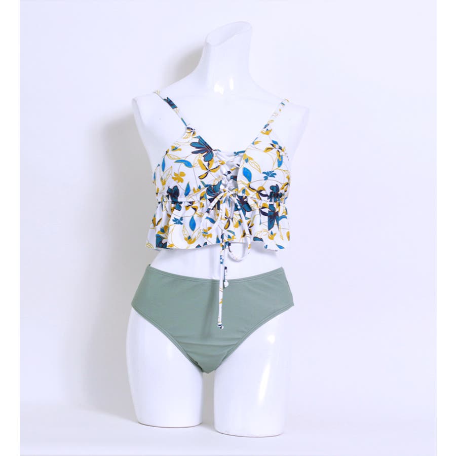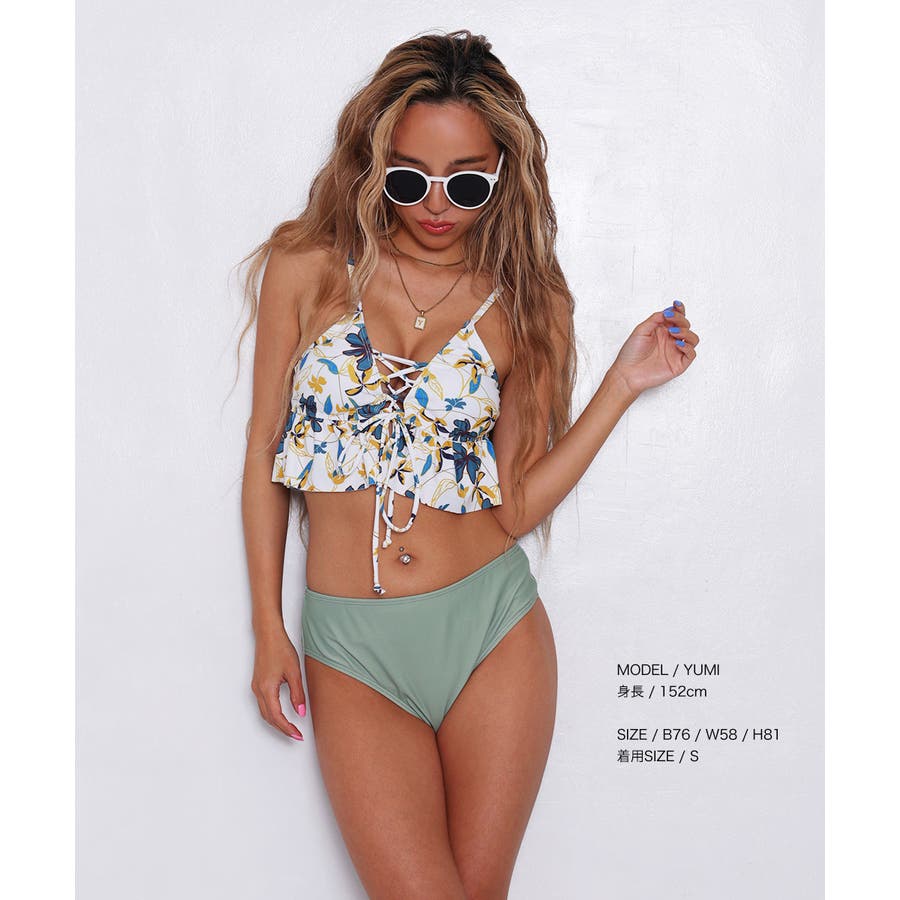 フラワーフリルレースアップビキニ