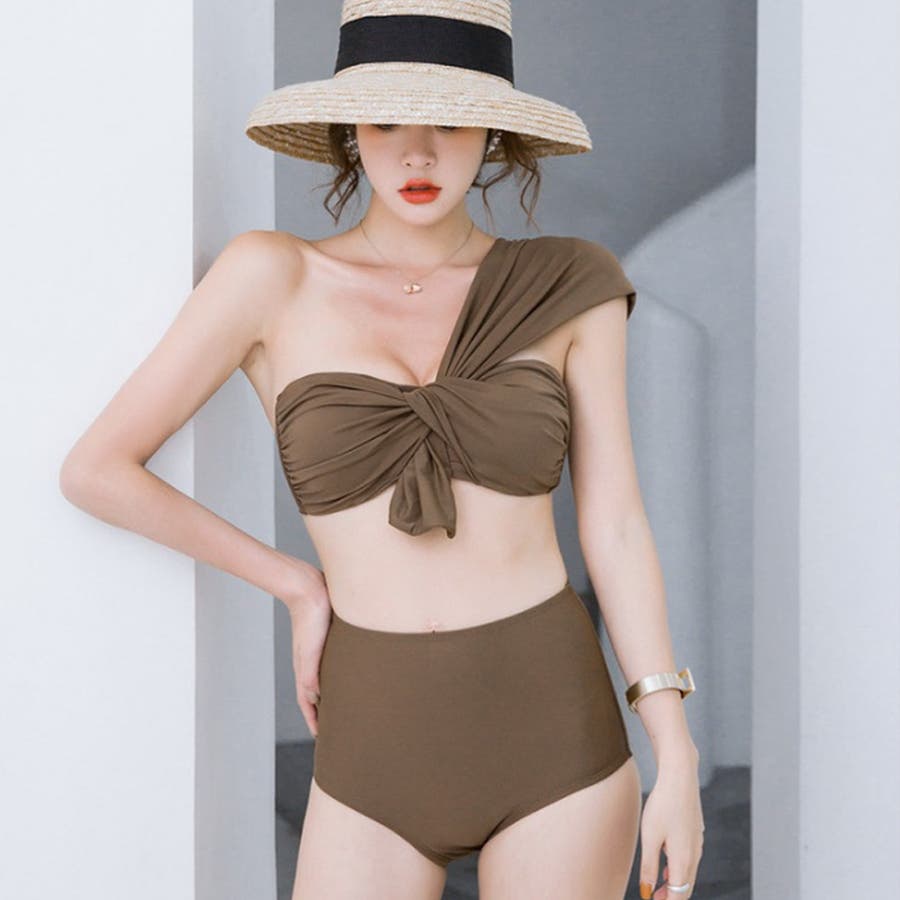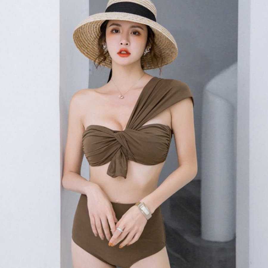 水着レディース タンキニ ワンショルダーデザインビキニ