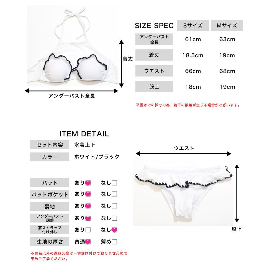 | サイズ | [S] アンダーバスト全長:61cm 着丈:18.5cm ウエスト:66cm 股上:18cm [M] アンダーバスト全長:63cm 着丈:19cm ウエスト:68cm 股上:19cm |