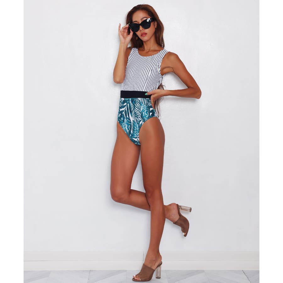 ワンピース水着 バックオープンボタニカルOP LAVIA