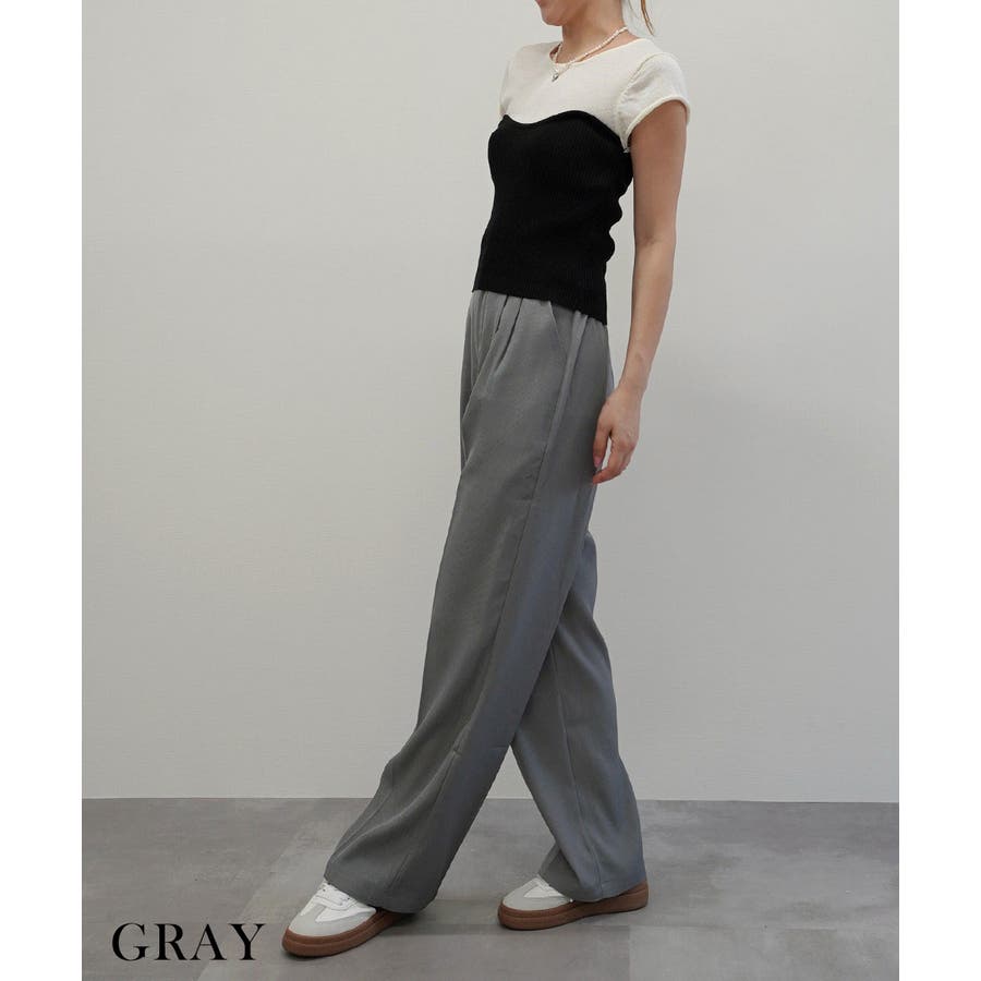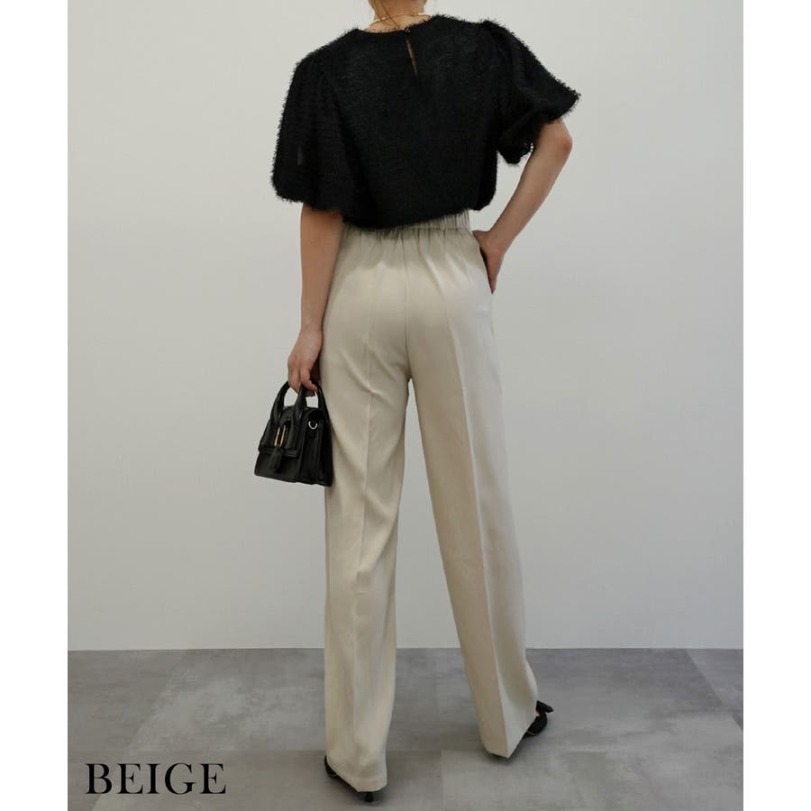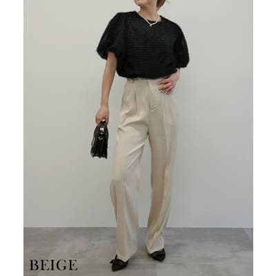 ハイウエストとセンタープレスで脚長効果が期待できるアイテム。